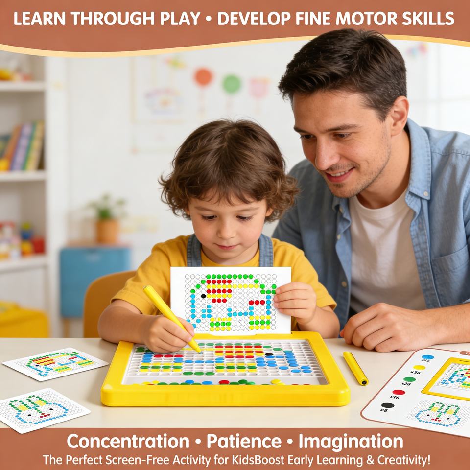 AiJH Giocattolo Educativo Creativo Fai-da-Te, Tablet per Disegno, Gioco Puzzle, Lavagna per Disegno a Punti con Auto e Aereo per Bambini