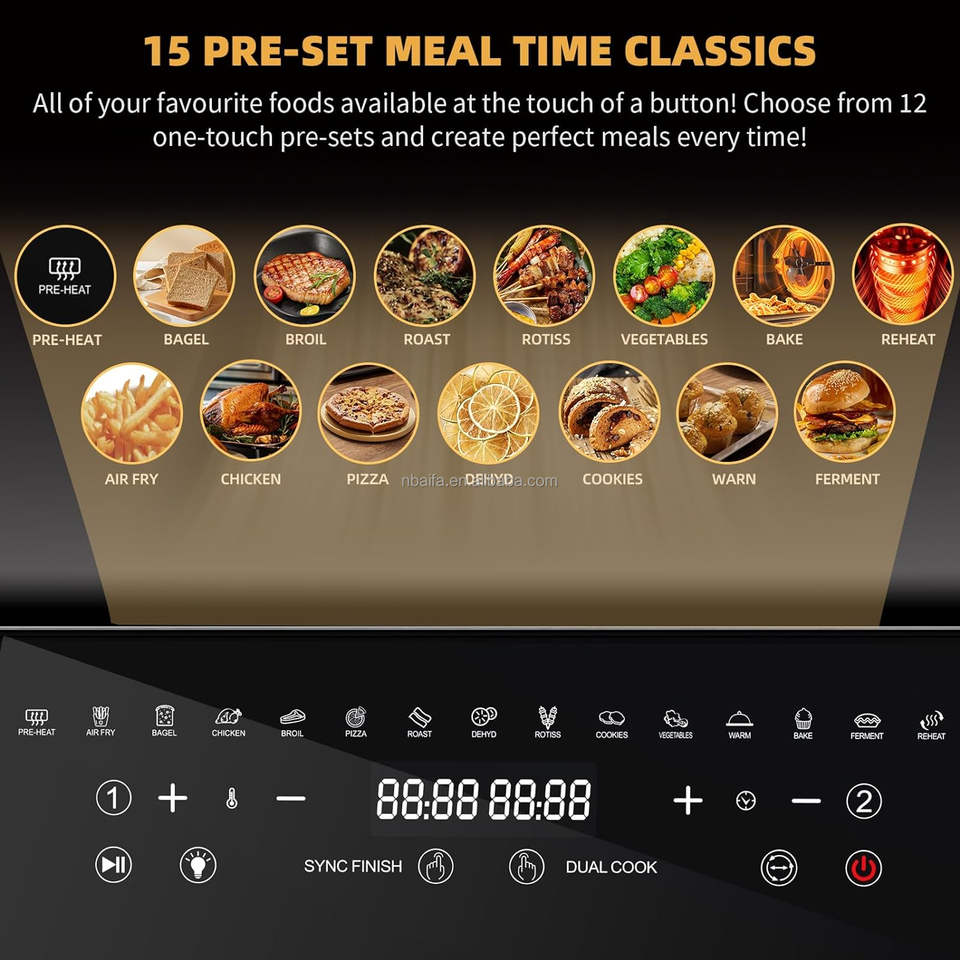 Aifa 24L grande friggitrice ad aria a microonde forno elettrico combinato XXL 1800W 10 in 1 doppio acciaio inossidabile friggitrice ad aria forno con girarrosto