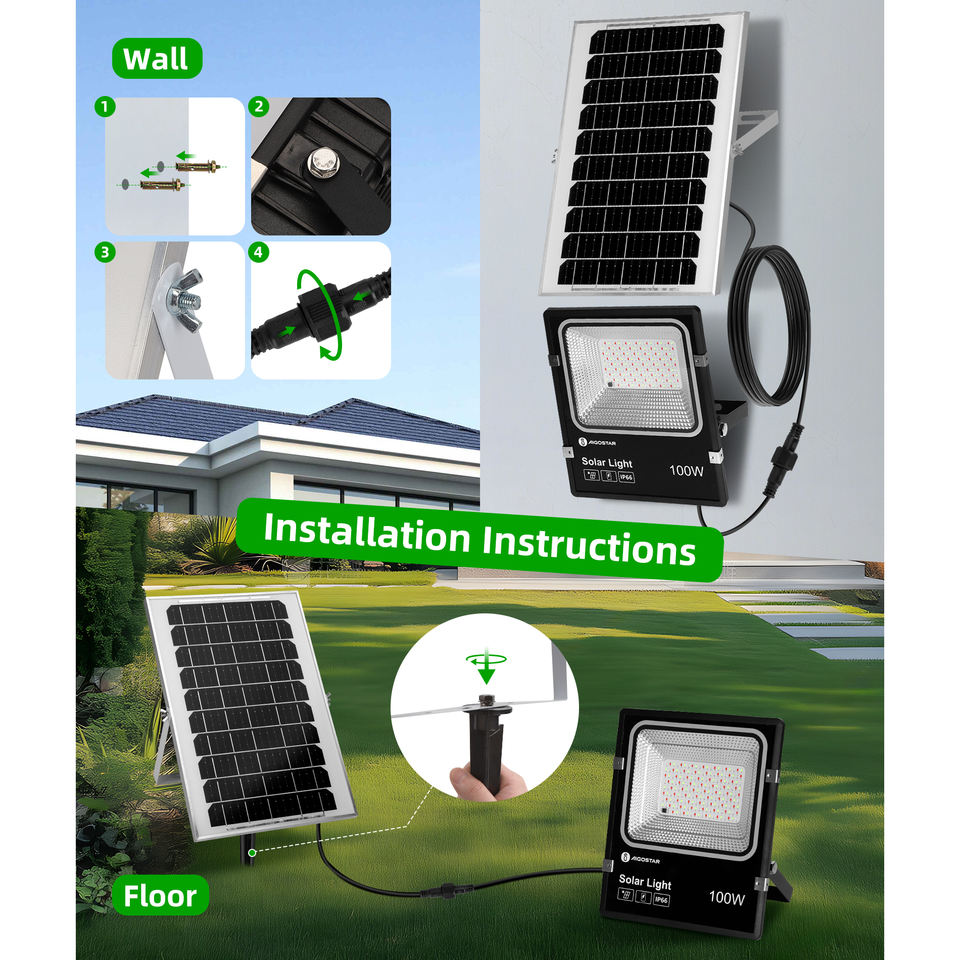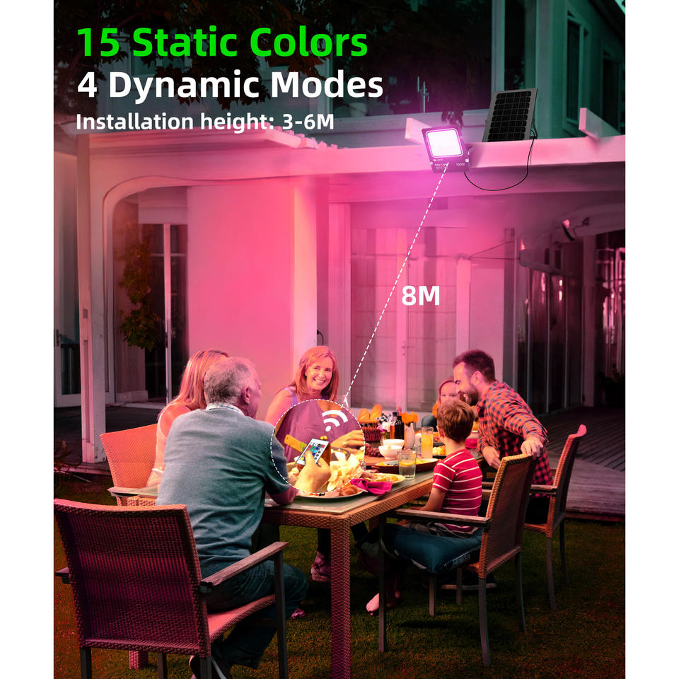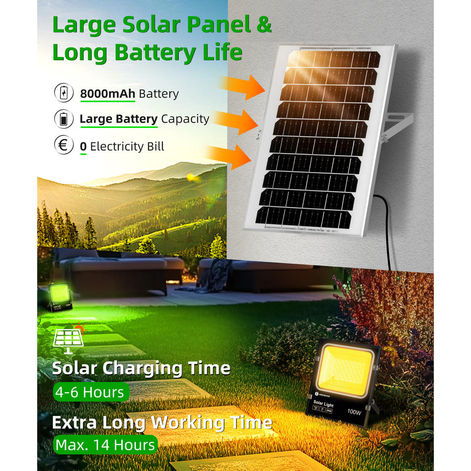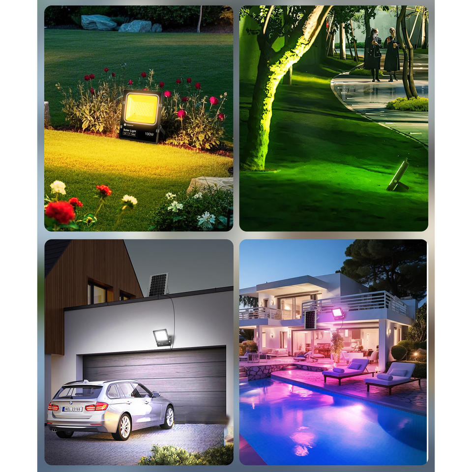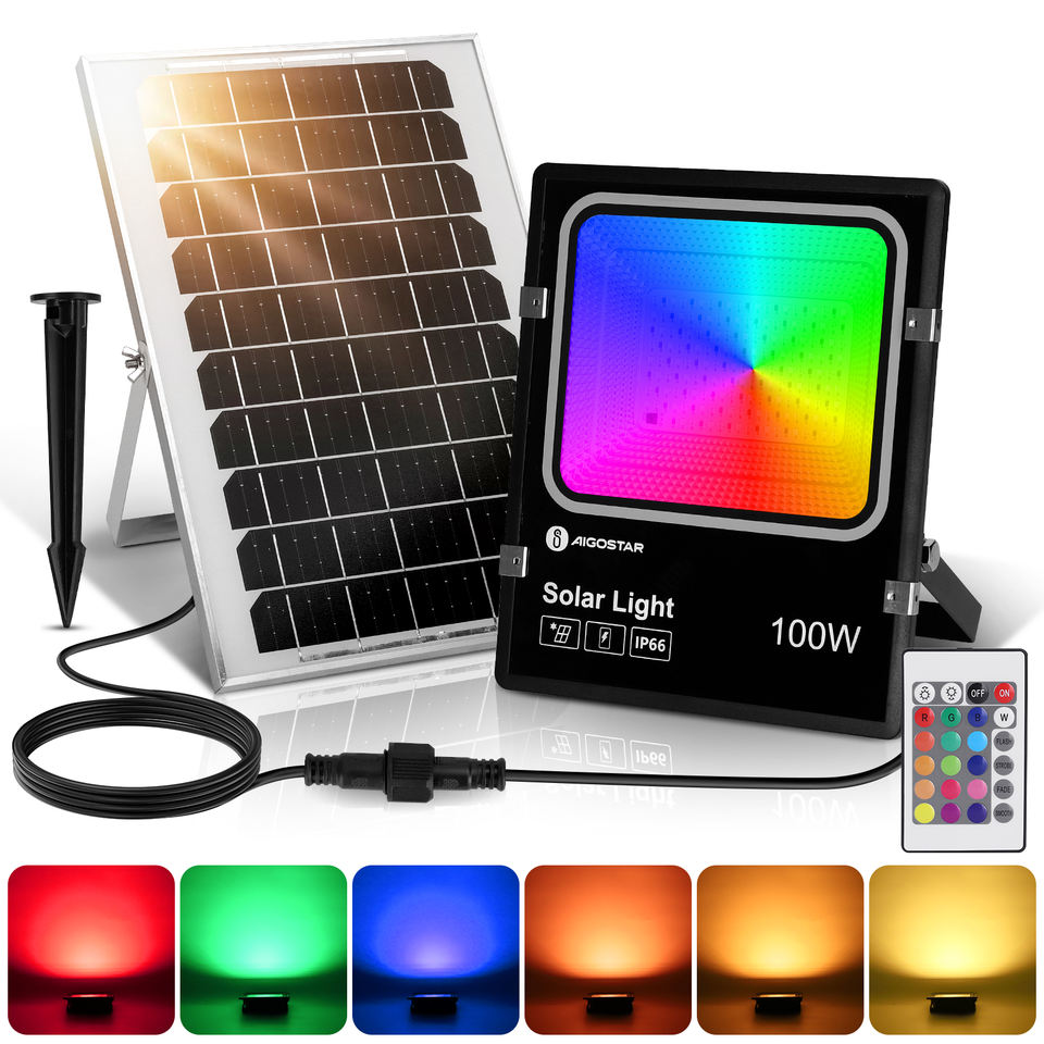 Aigostar 100W RGB Solar Outdoor Spotlight 8000mAh High Capacity Battery Large Solar Panel Remote Control Garden Lights
