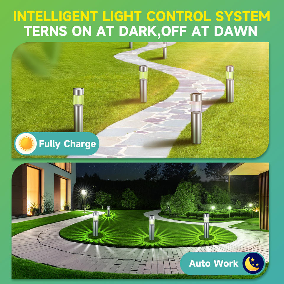Aigostar 12-Piece Outdoor Garden LED Solar Lights IP44 Cool White 6500K 5W Stainless Steel Lamps with RoHS Certification