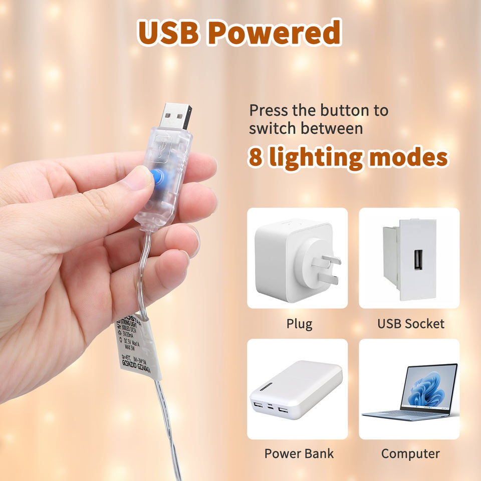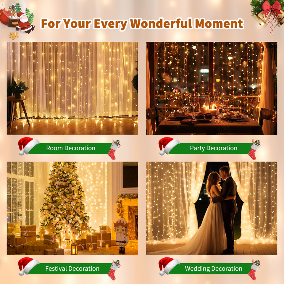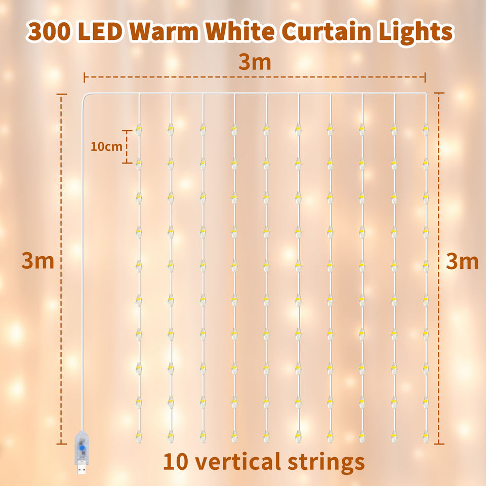 Aigostar 300 LED Christmas Curtain Lights 3x3m Copper Wire String 10m Length 8 Modes Remote Control Fairy Lights for Parties