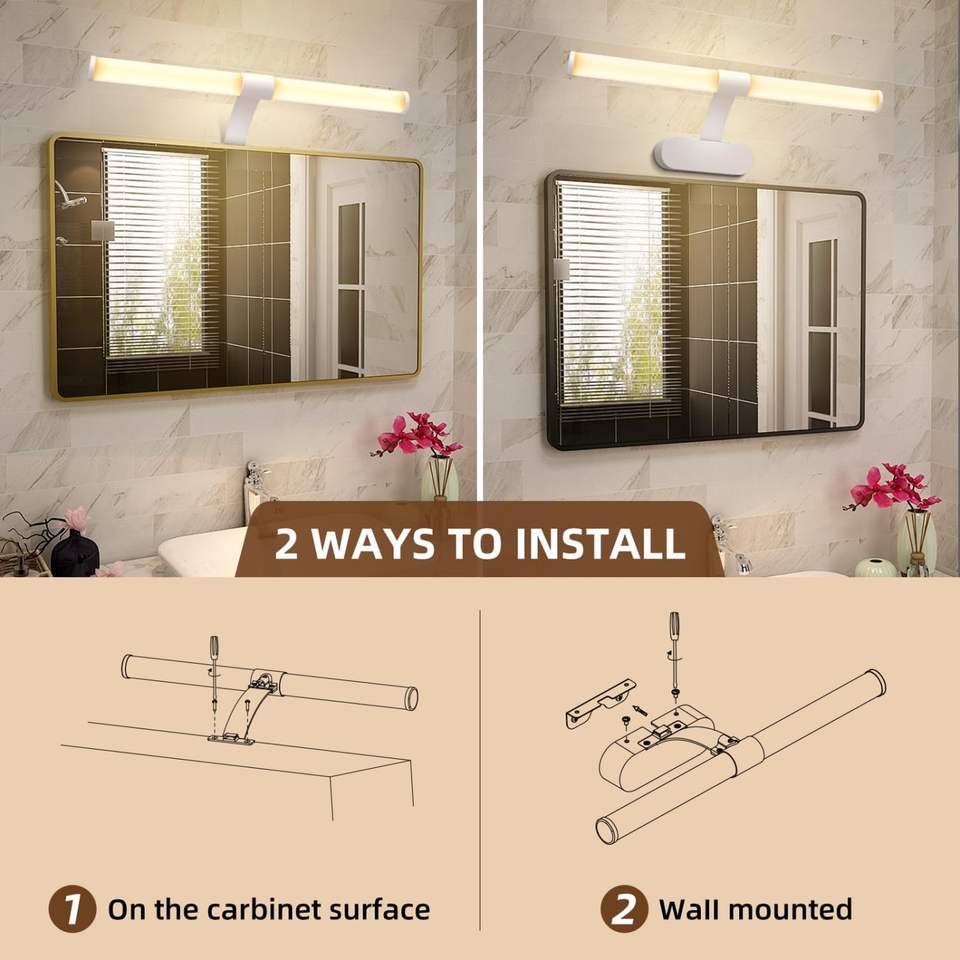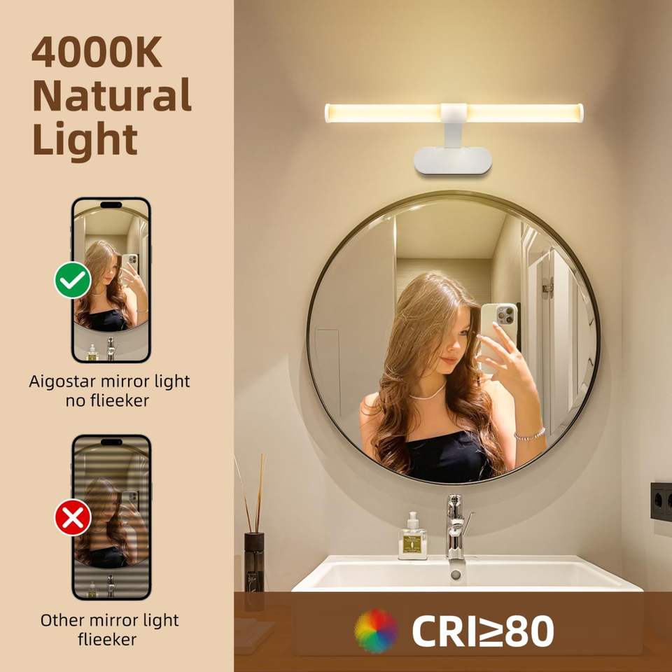 Aigostar 6W Mirror Lights 40CM Modern Wall Light with 4000K LED Wireless Vanity IP44 Waterproof 600LM Picture Lights