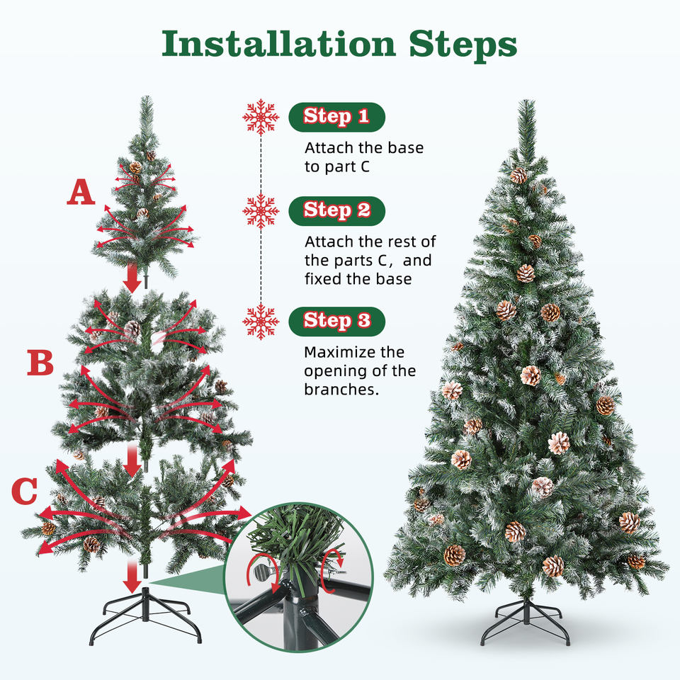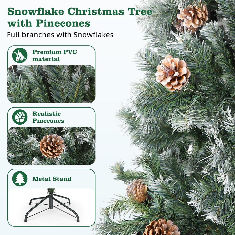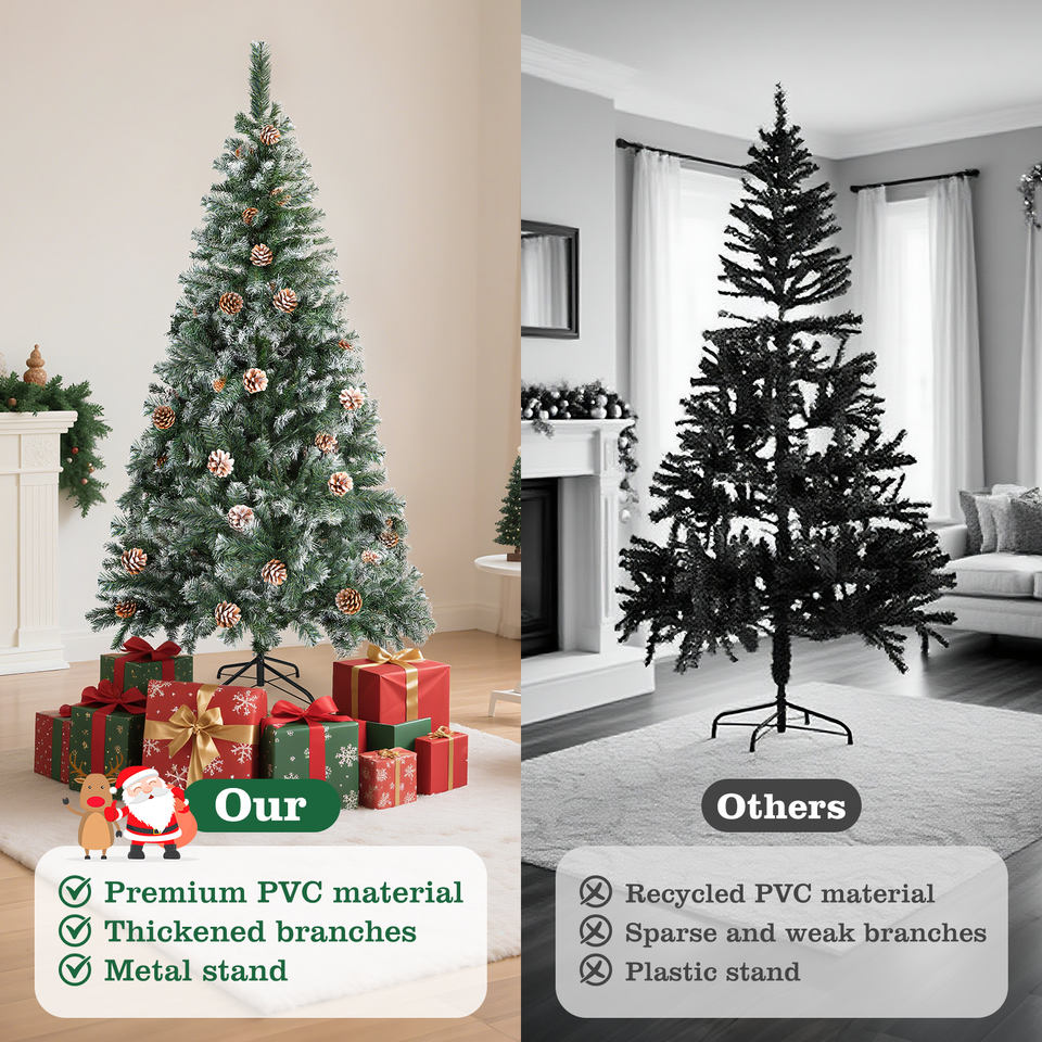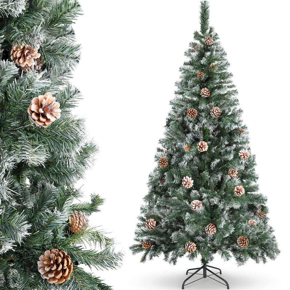Aigostar Luxury 180cm Artificial Snowy White Christmas Tree 650 Leafy Branches 43 Natural Pine Cones Metal Christmas Decoration