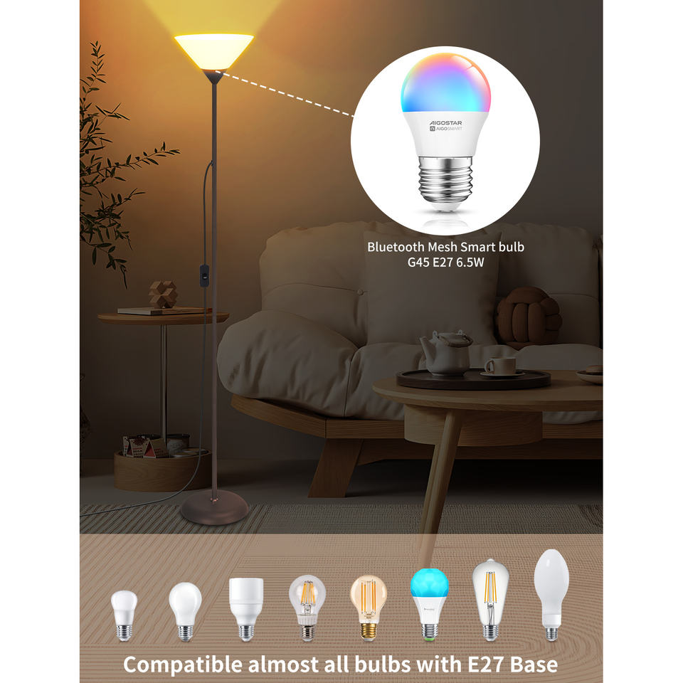 Aigostar Modern 175 cm Floor Lamp E27 Base Remote Control and for Bluetooth LED Bulb RGB & 2700K-6500K for Living Room