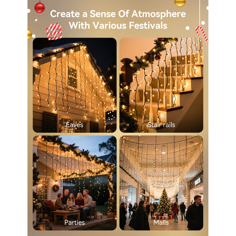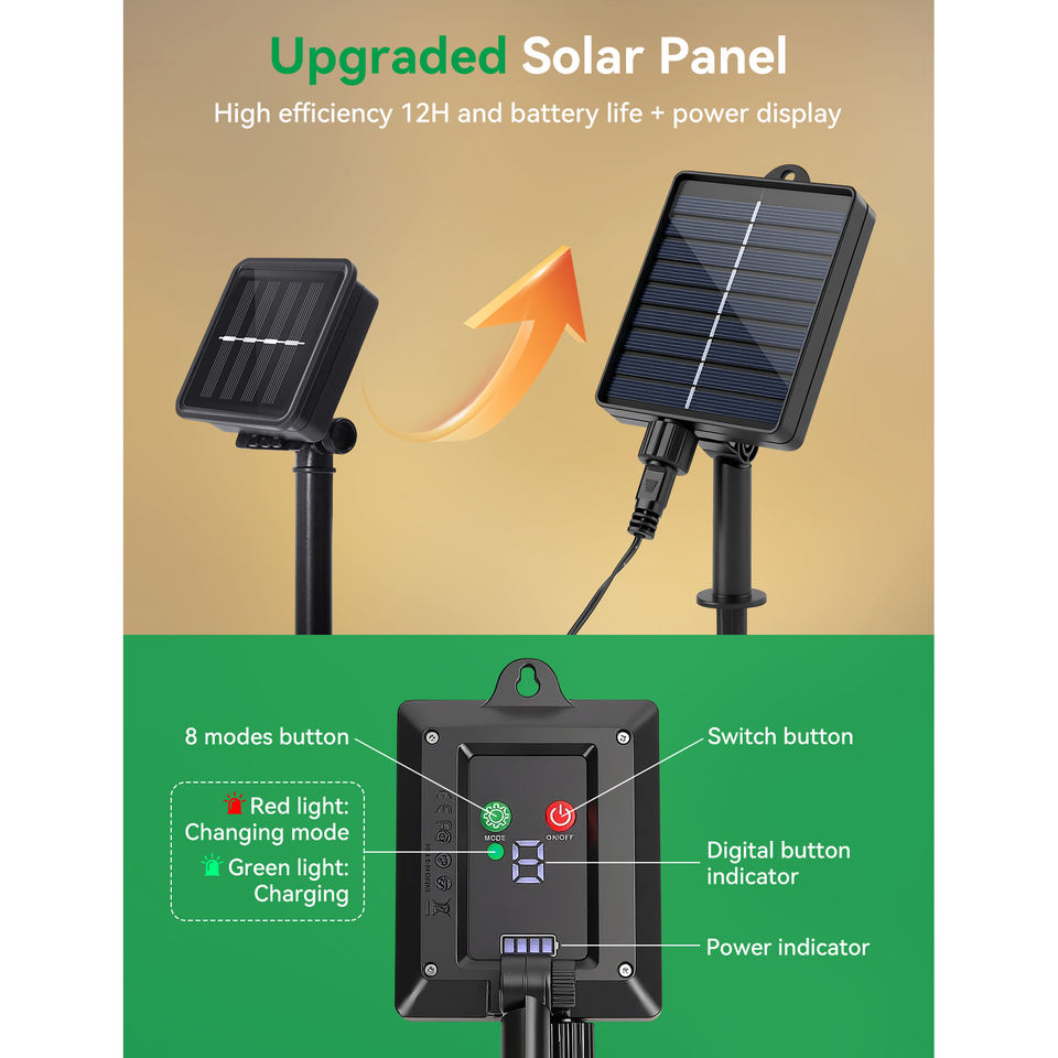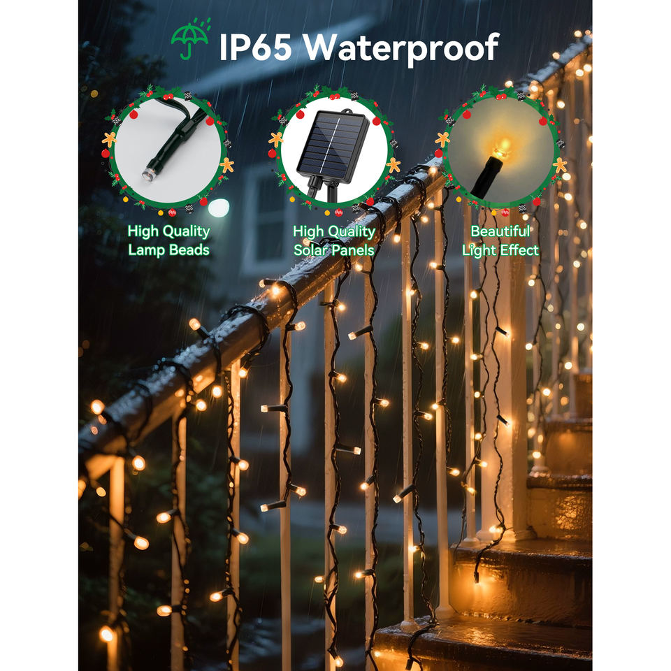 Aigostar Outdoor Christmas Curtain Lights 100 LED 8 Modes IP65 Solar Powered USB for Parties