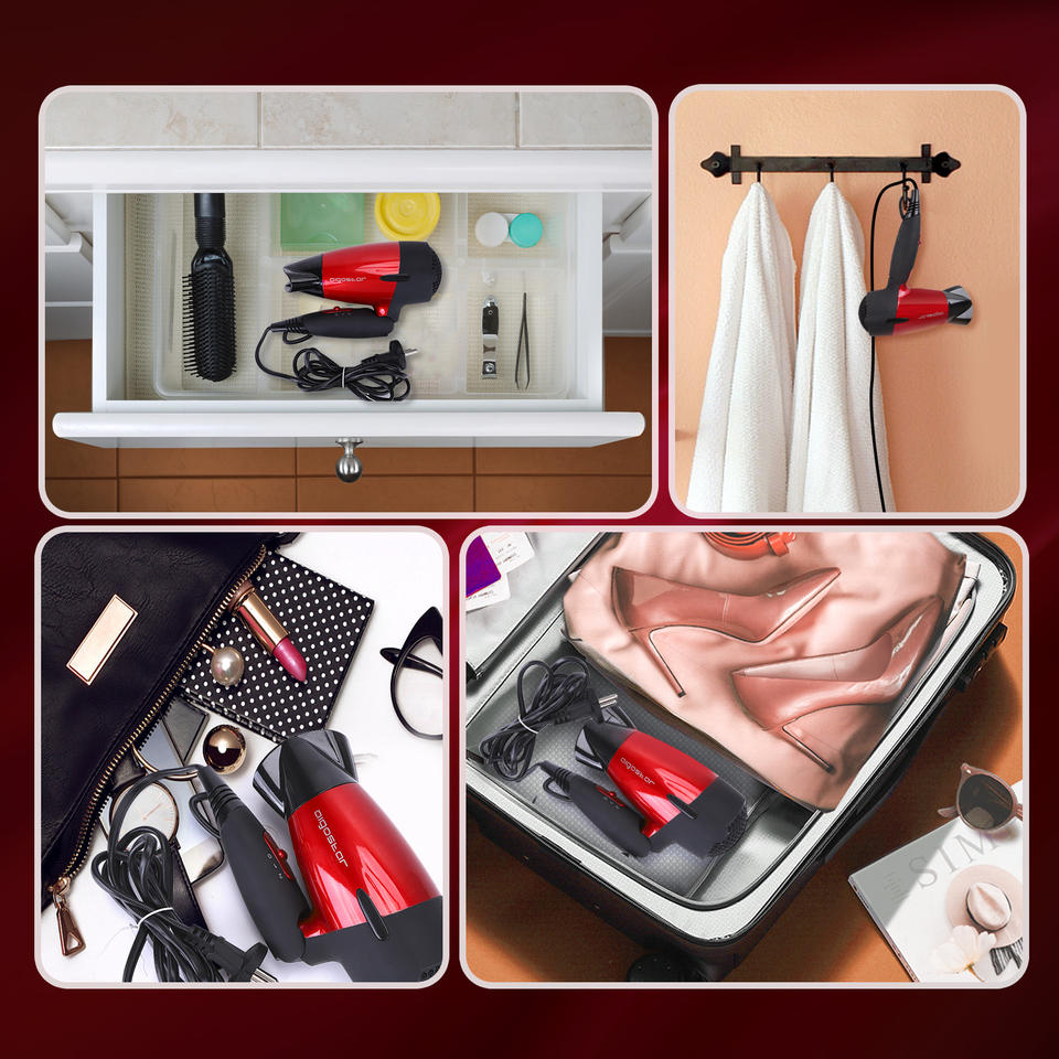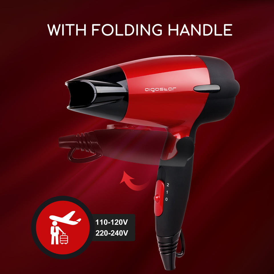 Aigostar hair dryer, 1500 W, travel dryer with folding handle, portable, double voltage, 2 speeds