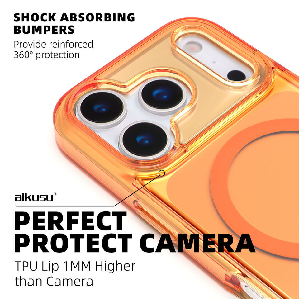 Custodie Magnetiche Impermeabili Aikusu Trasparenti Arancioni Personalizzate all'Ingrosso per iPhone 17 16 15 14 13 Air Pro Max
