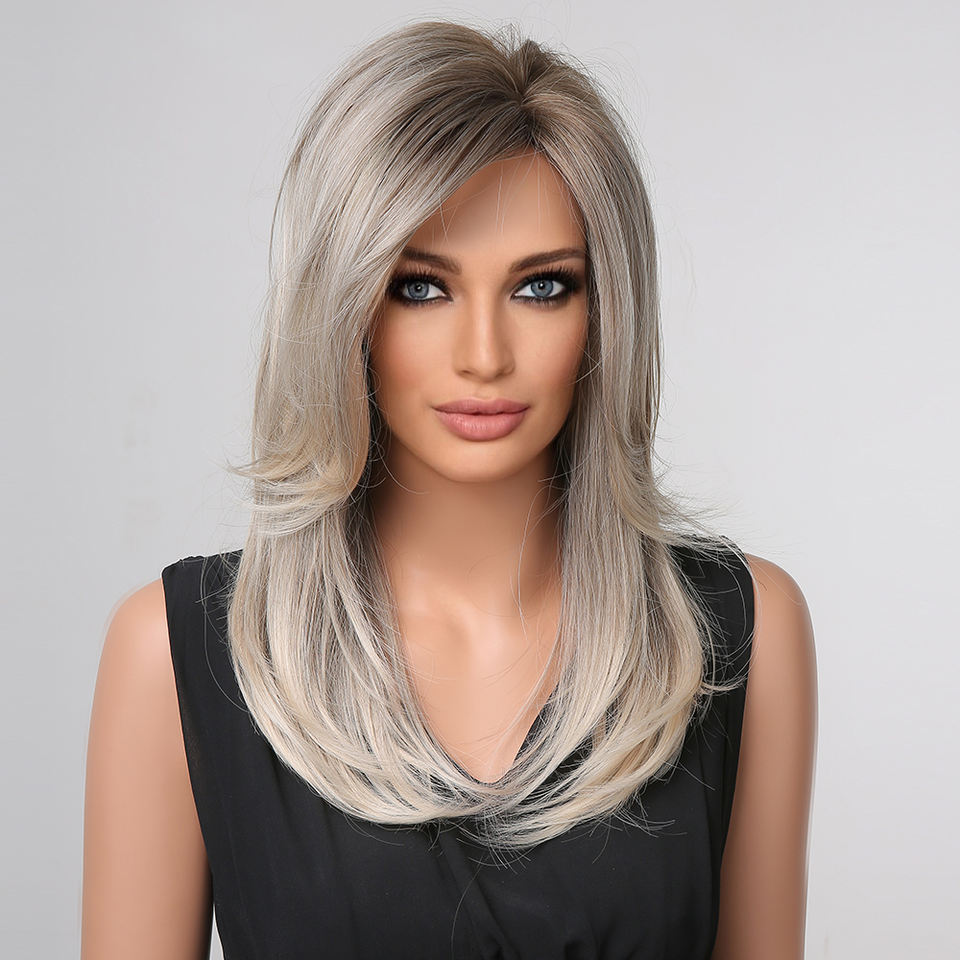 Ainizi Wholesale 22in Natural Silky Hair Wigs Layered Ombre Gray Synthetic Hair Wigs for Women
