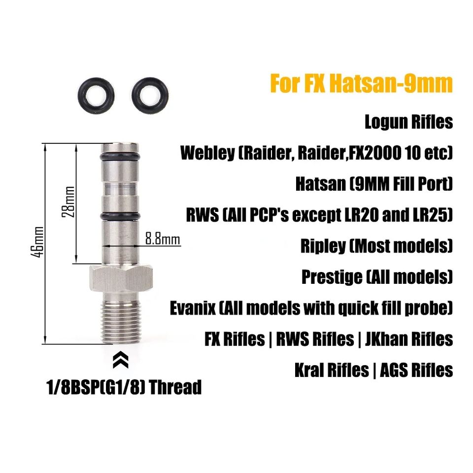 Sonda di riempimento ad aria per FX Hatsan,BSA,Webley,SMK Artemis,Cricket,WEIHRAUCH,Walther, PR900, Rotex R8 e RM8 Brocock