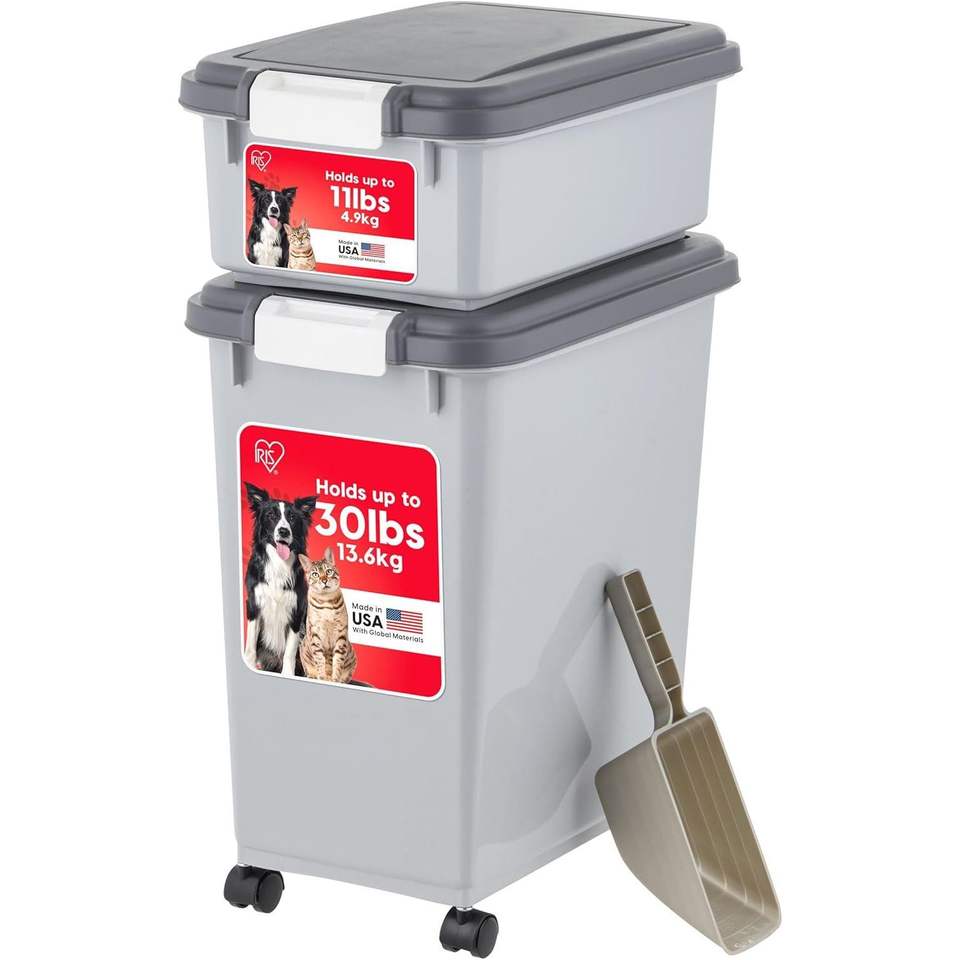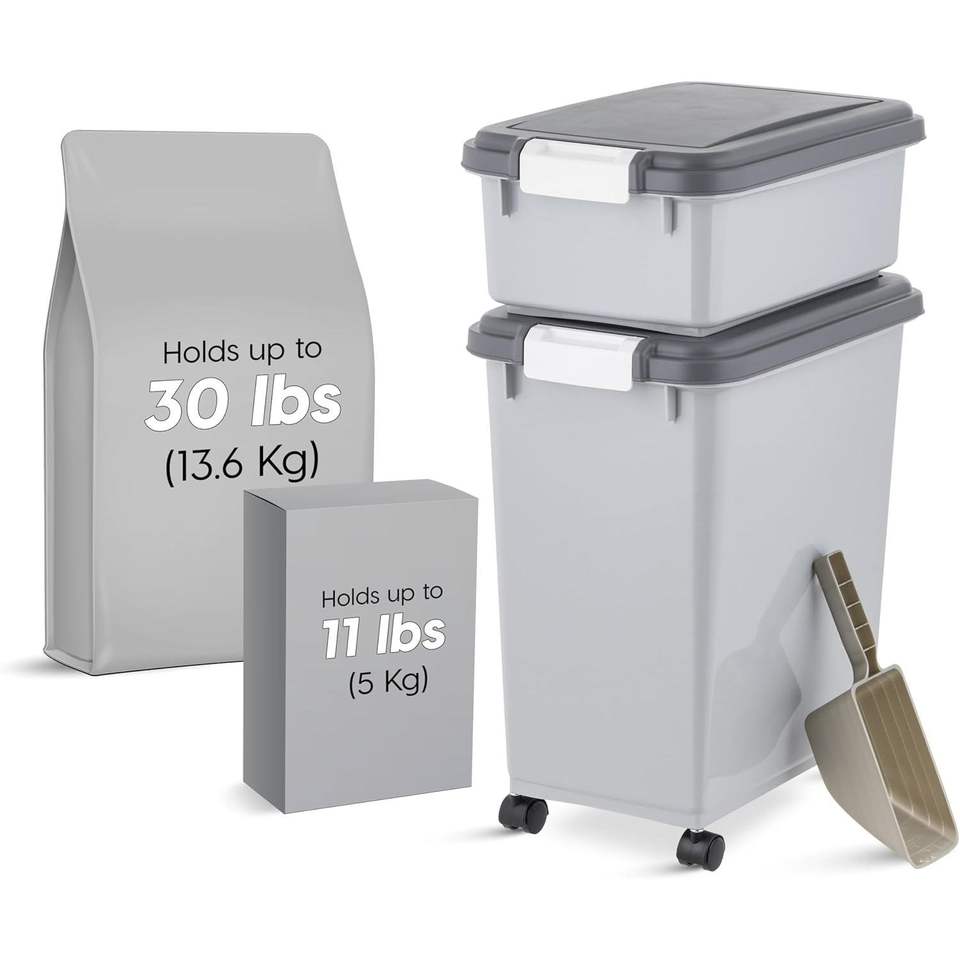 Airtight 2-Cup Dog and Cat Food Storage Container 30 Lbs 11 Lbs Combo Stackable Treat Container for Small Spaces