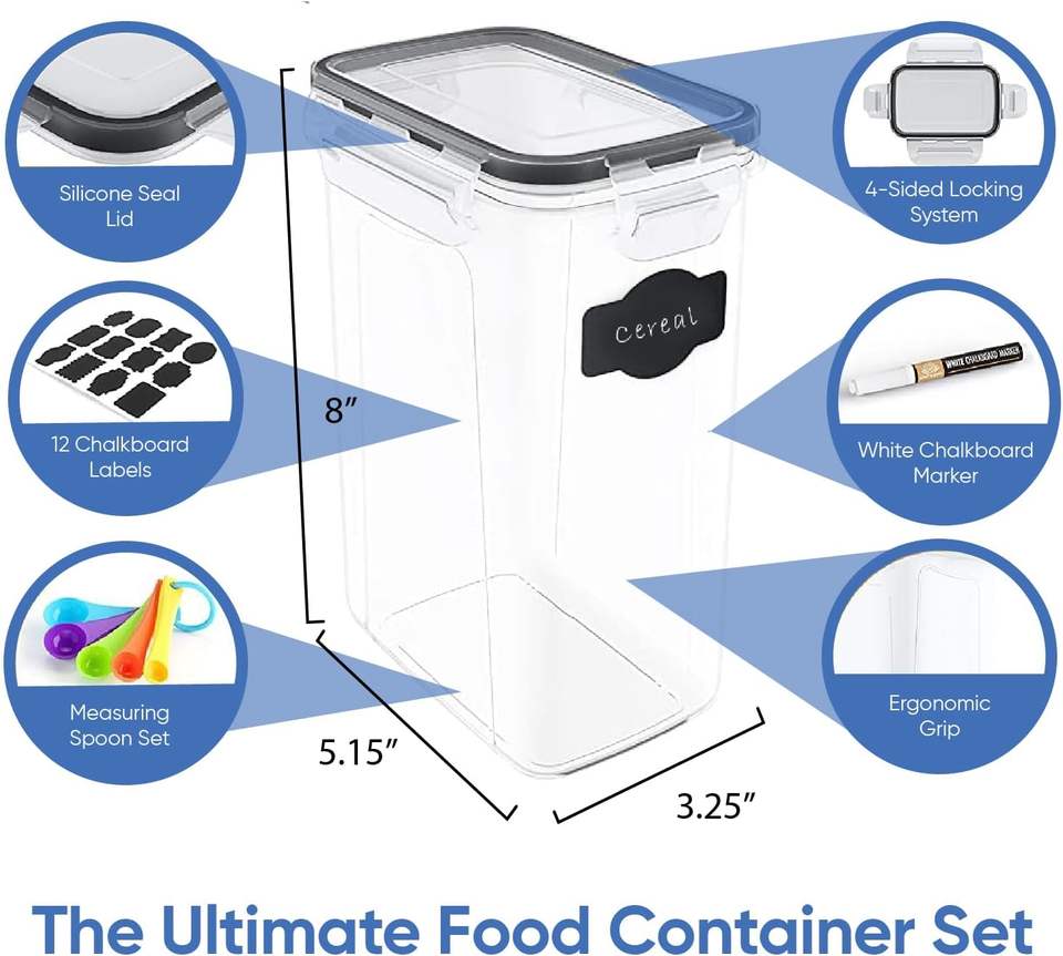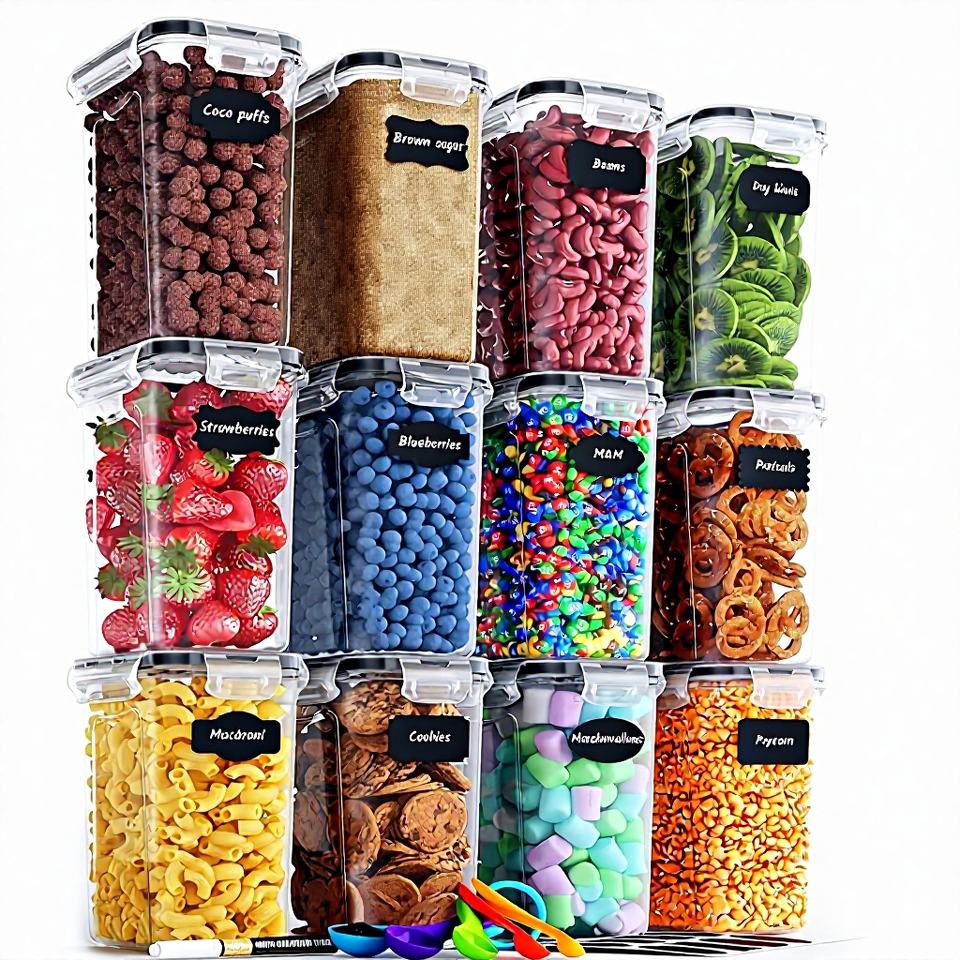 Set di 12 Contenitori Ermetici Riutilizzabili in Plastica Senza BPA per Alimenti (2L Ciascuno) Organizzazione Dispensa Cucina