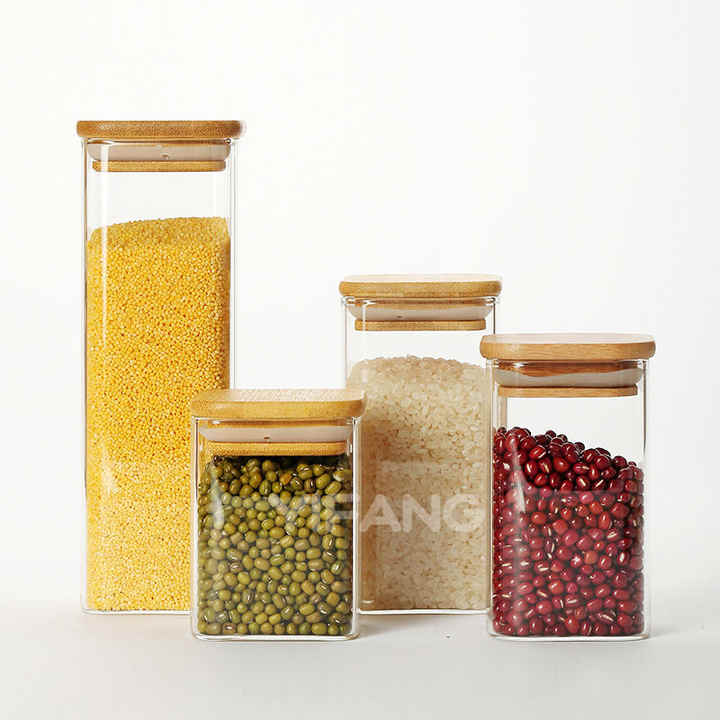 Contenitori da cucina pratici per la conservazione di cereali snack a base di noci in grani di caffè in grani di vetro ermetici con coperchi di bambù