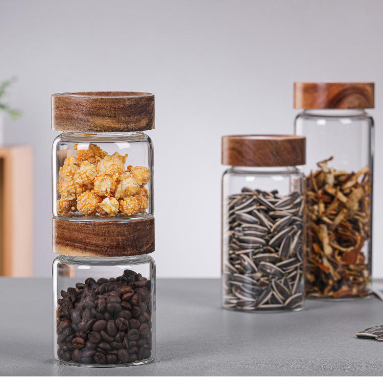 Nome del prodotto:Barattolo in vetro borosilicato di alta qualità OEM con coperchio in legno di acacia