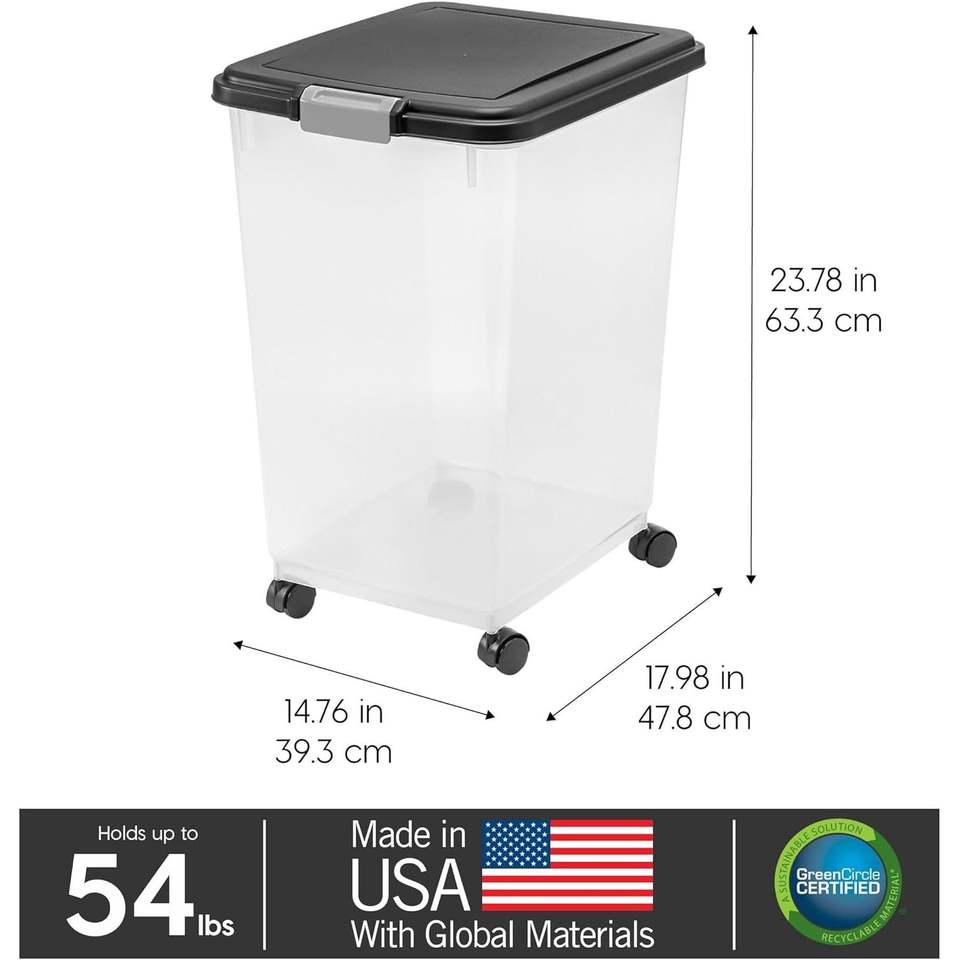 Contenitore Ermetico per Alimenti per Animali Domestici fino a 24,5 kg con Ruote Attaccabili per Cani, Gatti, Uccelli e Altri Piccoli Animali - Mantiene il Cibo Fresco