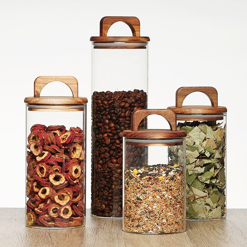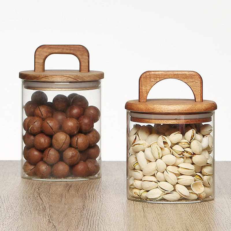 Airtight Wood Lid Glass Jar Grounds Candy & Tea Coffee Beans Airtight Kitchen Storage Bottles Sealed Canister Food Container