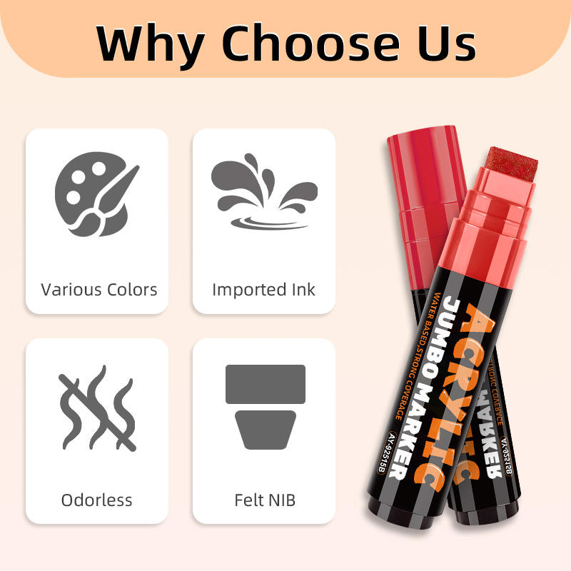 Pennarelli Jumbo in Acrilico Personalizzati Aiye Factory per Graffiti su Muri Esterni, Pittura Gigante POP Impermeabile, Pennarelli Argento Jumbo da 15MM
