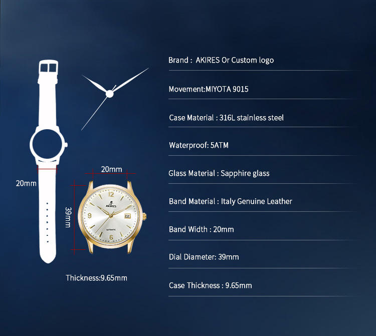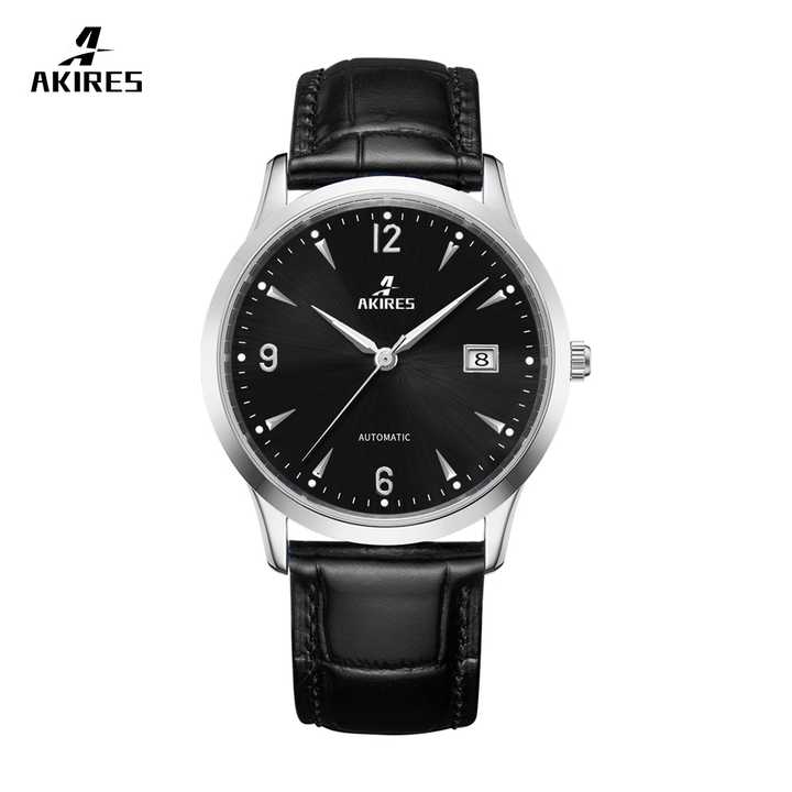 Akires Men's Mechanical Vintage Wrist Watch with Sapphire Crystal Glass Genuine Leather Band 316L Stainless Steel Analog Display