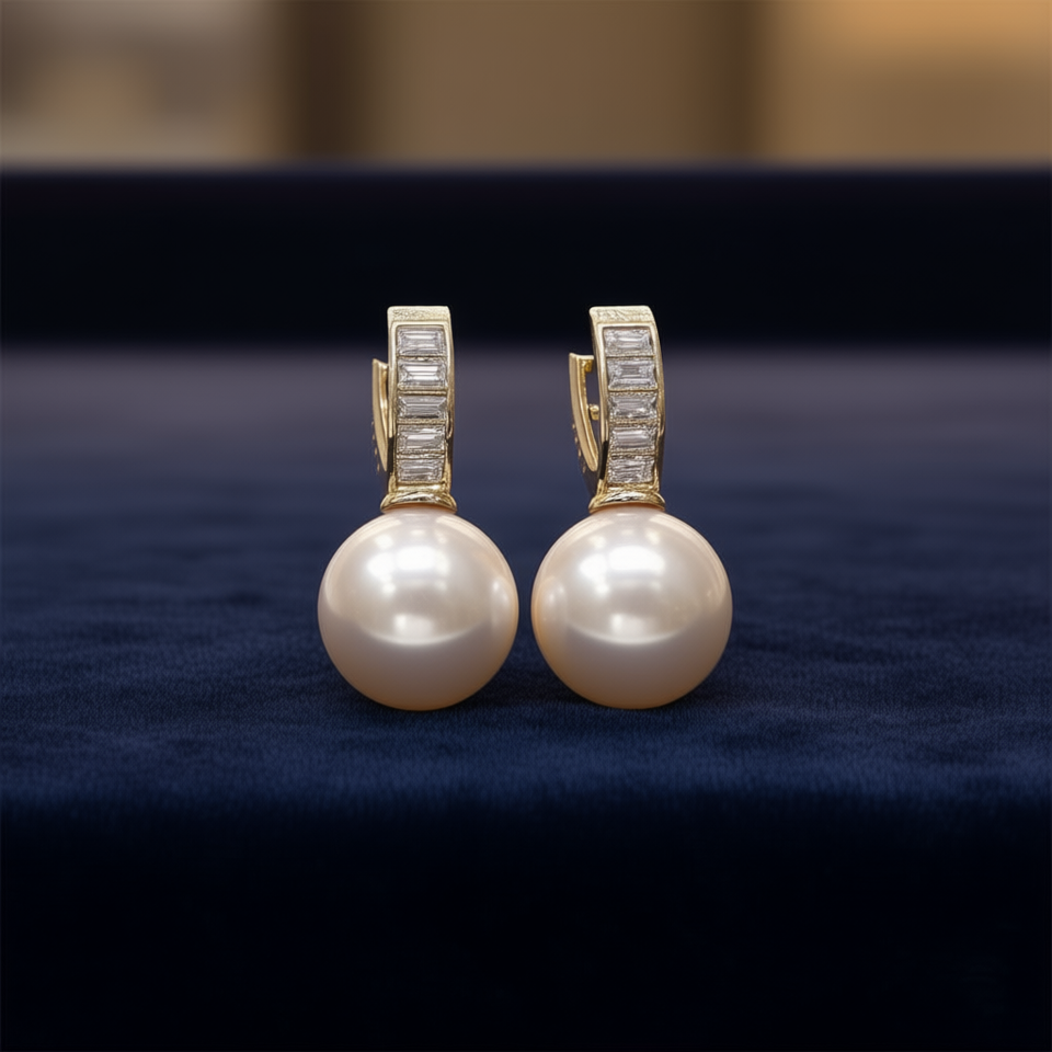 Akoya Pearl Earrings 18K Gold Plated AAA Cultured Pearl Round White Clip On Classic Wedding Jewelry For Women