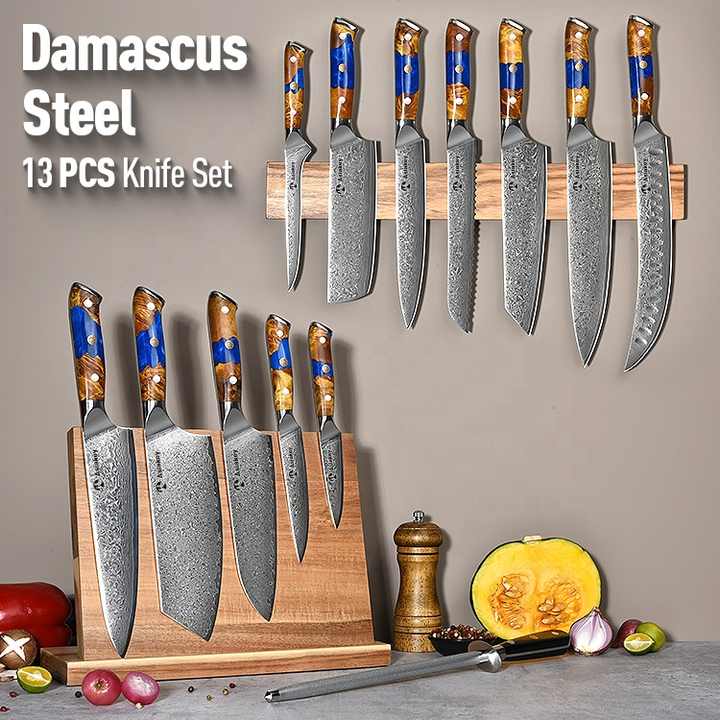 Set Professionale da Chef Asiatico Alabama in Acciaio al Carbonio AUS10 Damasco Coltelli da Cucina Giapponesi