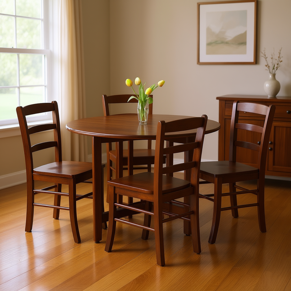 Alamo 5-Piece Modern Traditional Round Drop Leaf Dining Set with Ladder Back Chairs Wood Furniture for Dining Room