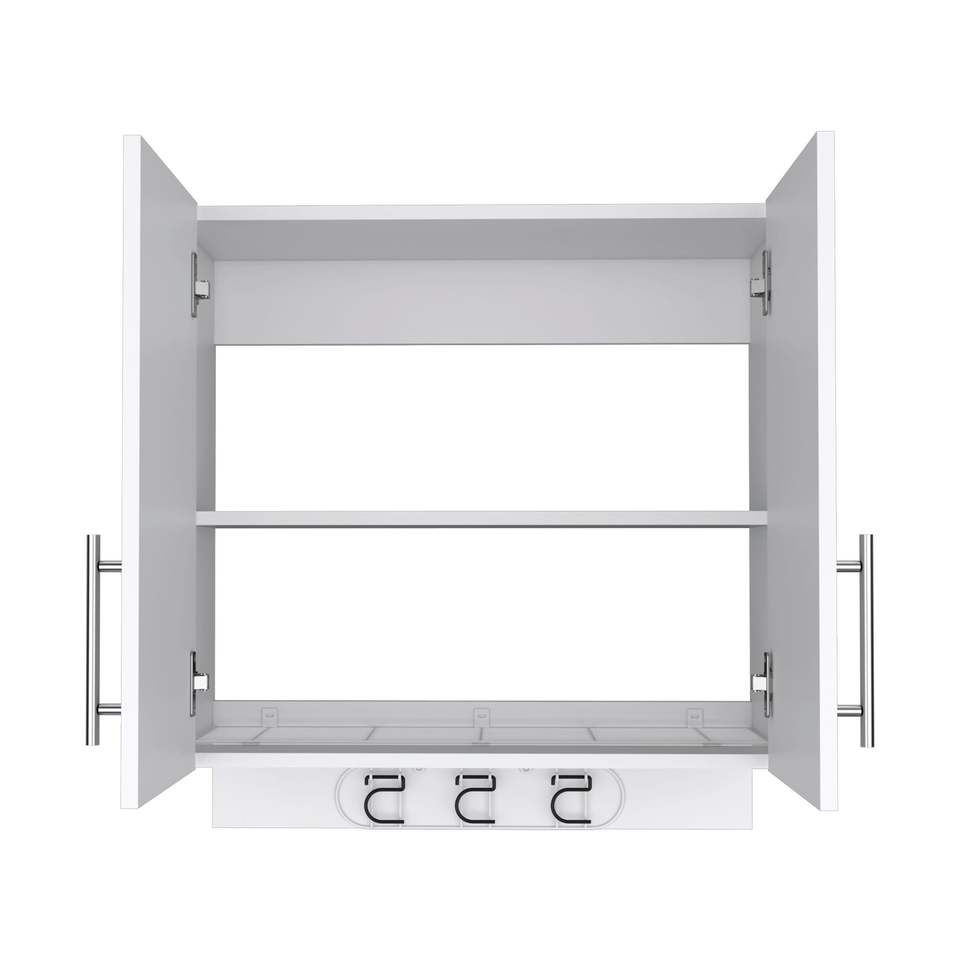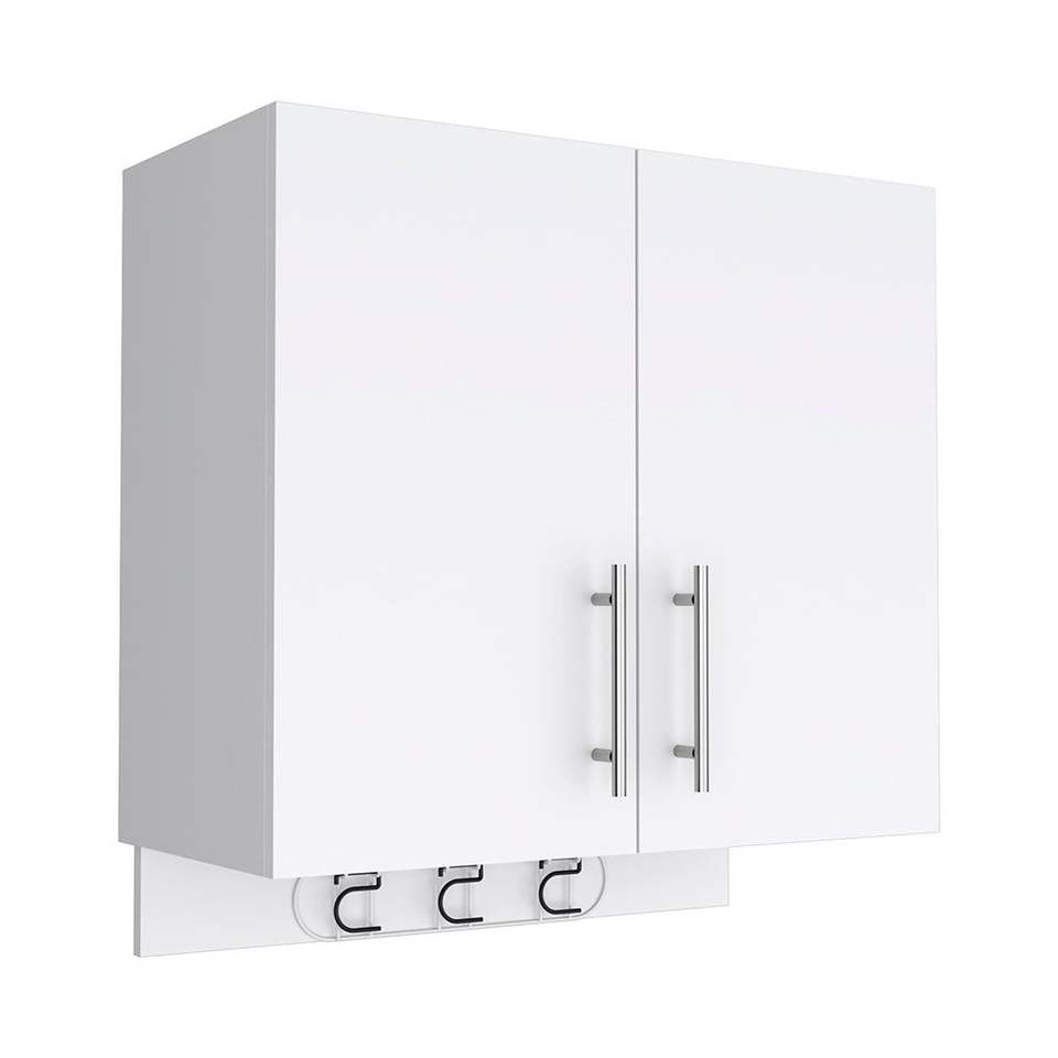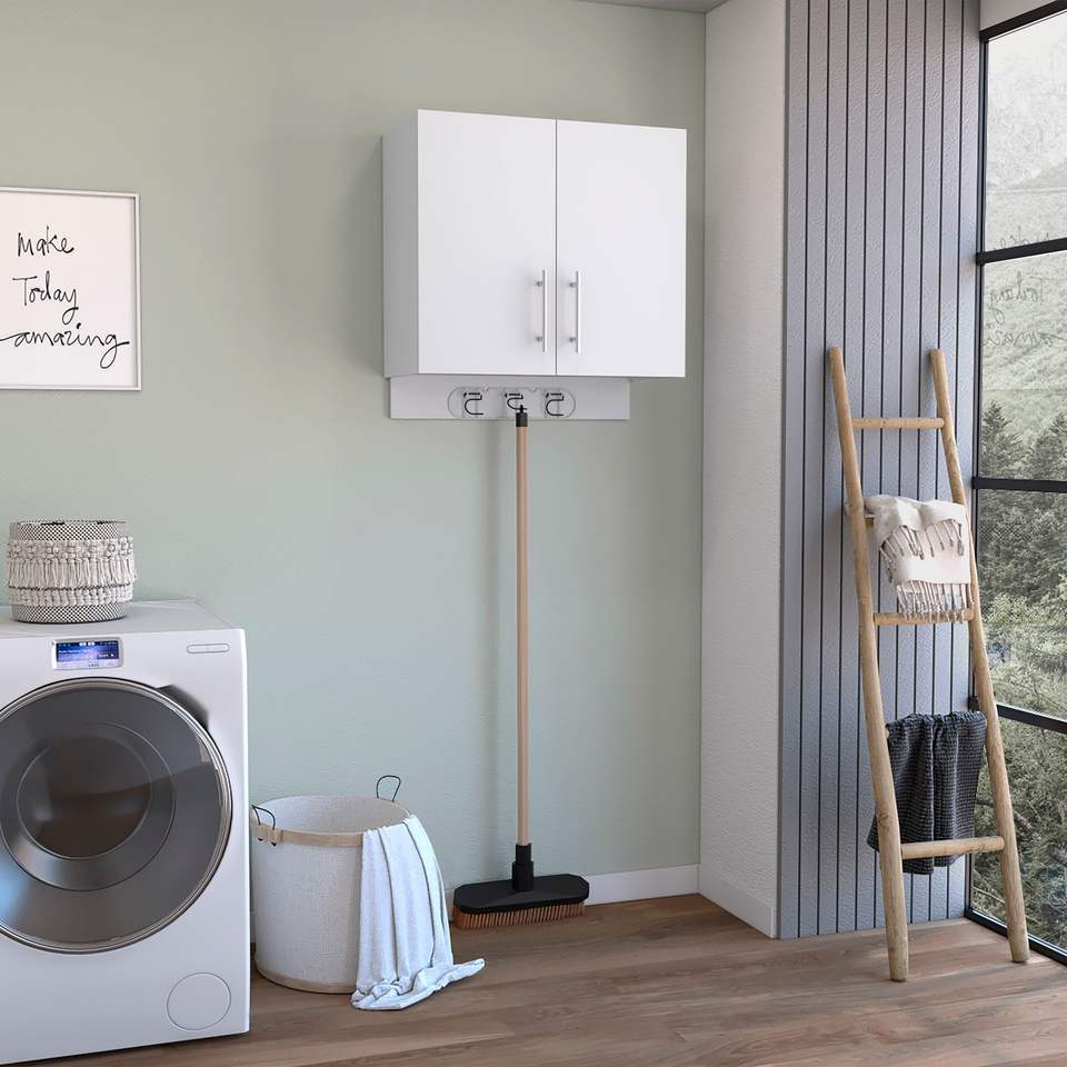Armadietto da Parete Bianco Albany di Depot E Shop con Ganci per Scope e Maniglie in Metallo per Organizzazione Domestica