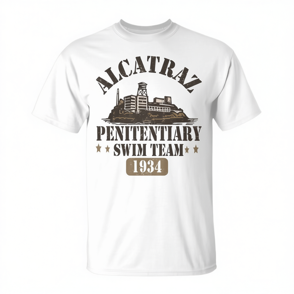 T-shirt Alcatraz Penitentiary Swim Team 1934 Vestibilità regolare in cotone Casual per tutte le stagioni