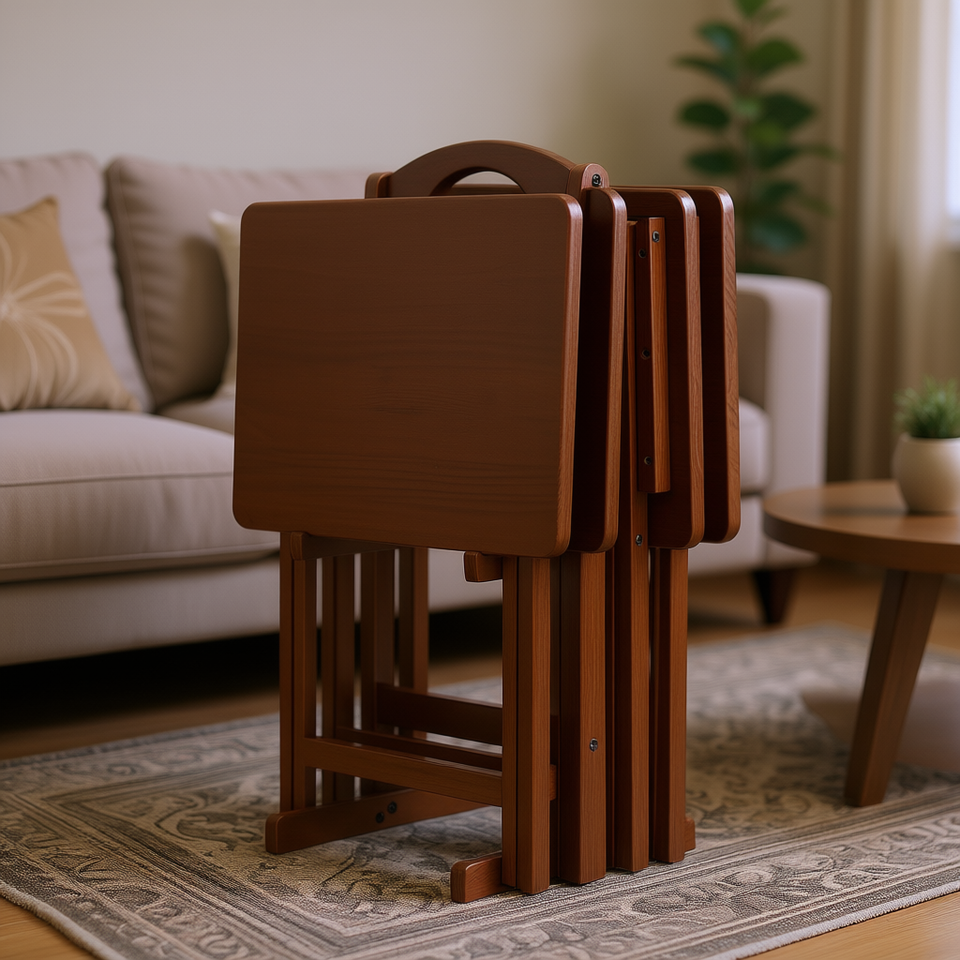 Set Tavolino da Salotto Pieghevole Alex in Noce a 5 Pezzi
