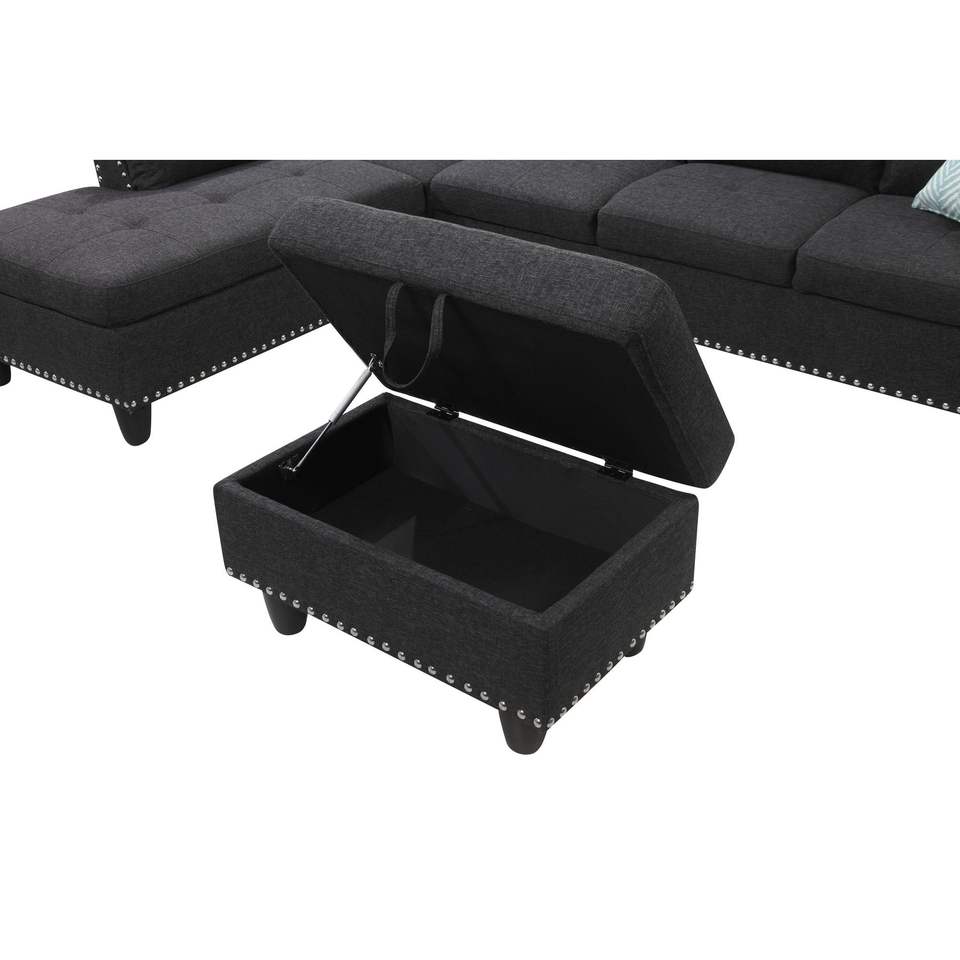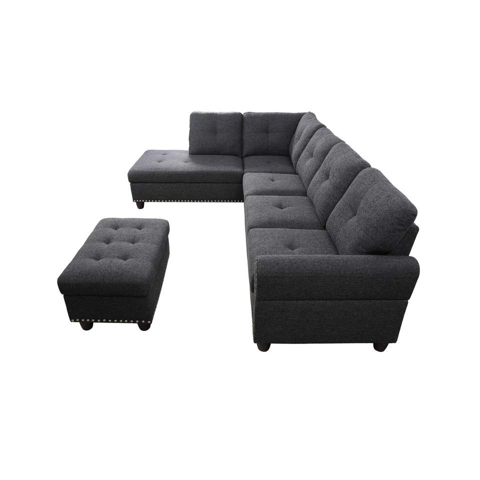 Divano Alger 98 con Chaise Longue e Pouf, Orientamento a Sinistra, per Arredamento Soggiorno