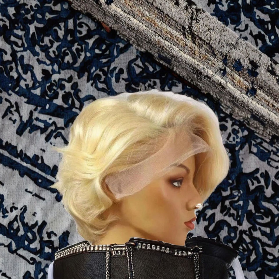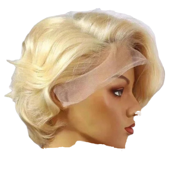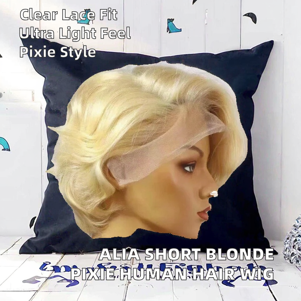 Parrucca Corta Alia con Calotta Piccola per Capelli Biondi, Frontale in Pizzo, Base in Pizzo, Densità 150%, Capelli Umani Remy, Vendita Calda per Donne
