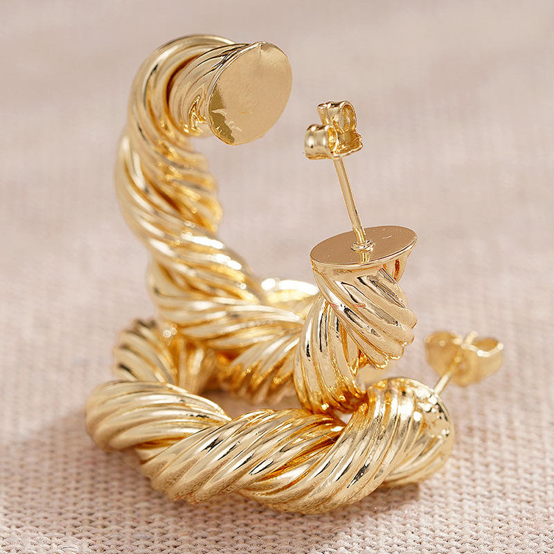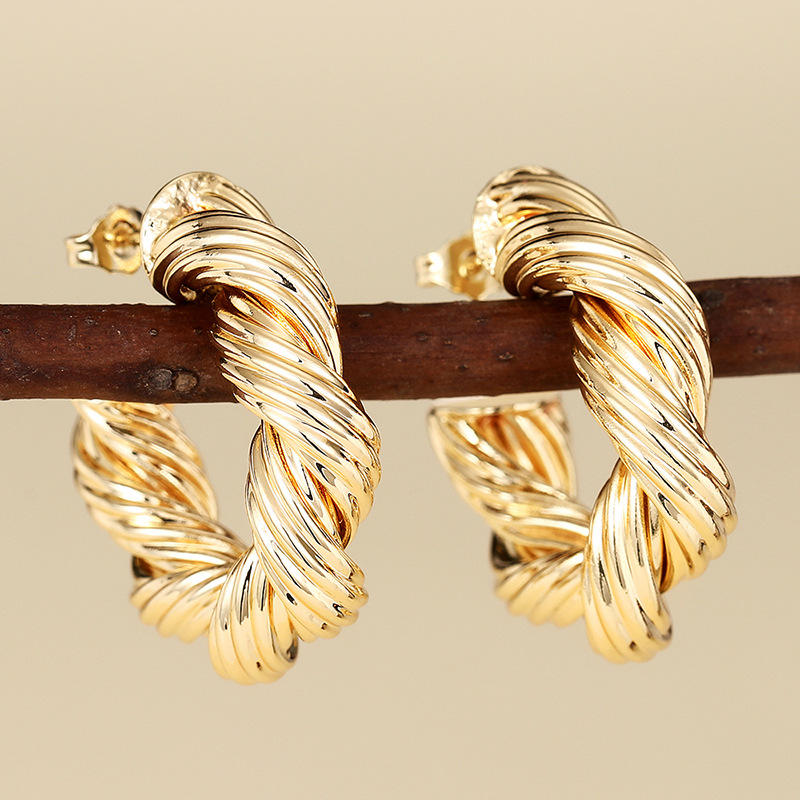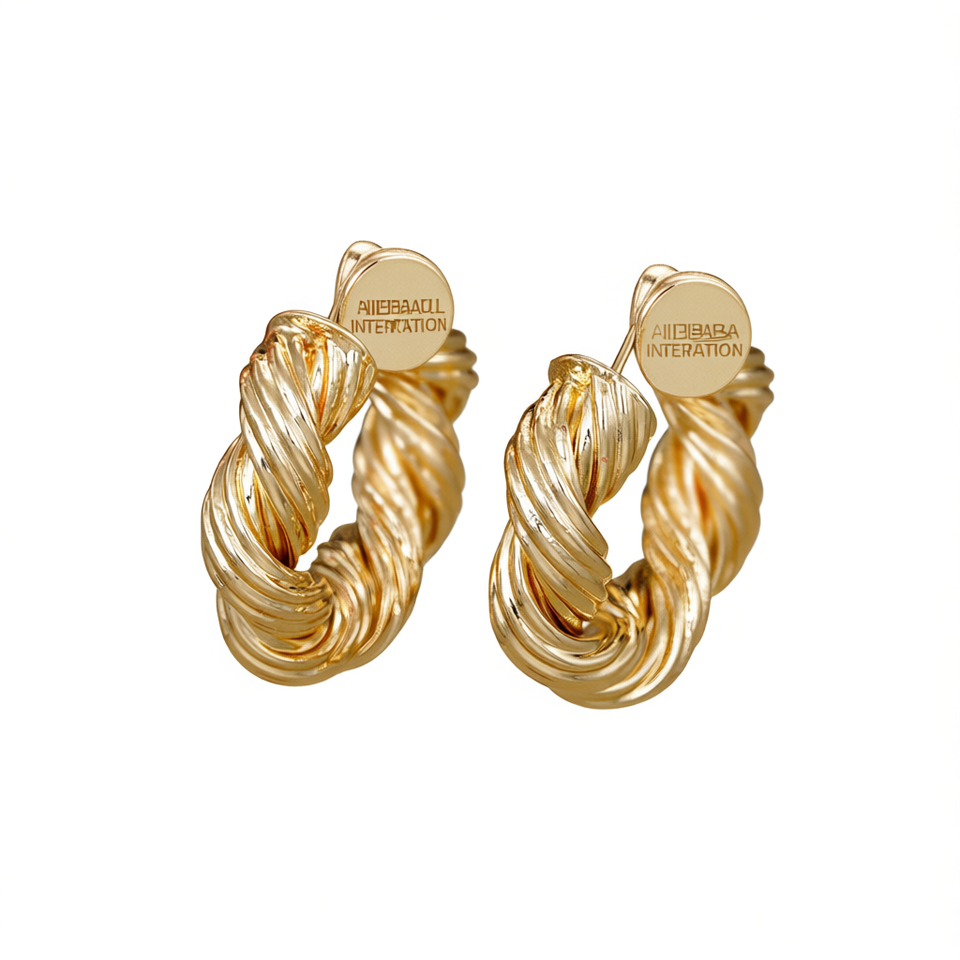 Orecchini a Cerchio Intrecciati Dorati Alibaba International, Gioielli di Lusso per Uso Quotidiano, Oro E4421