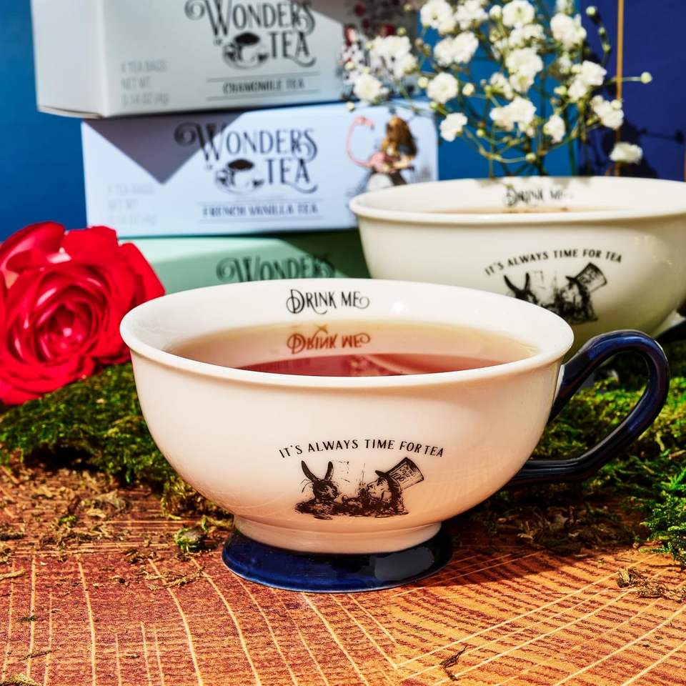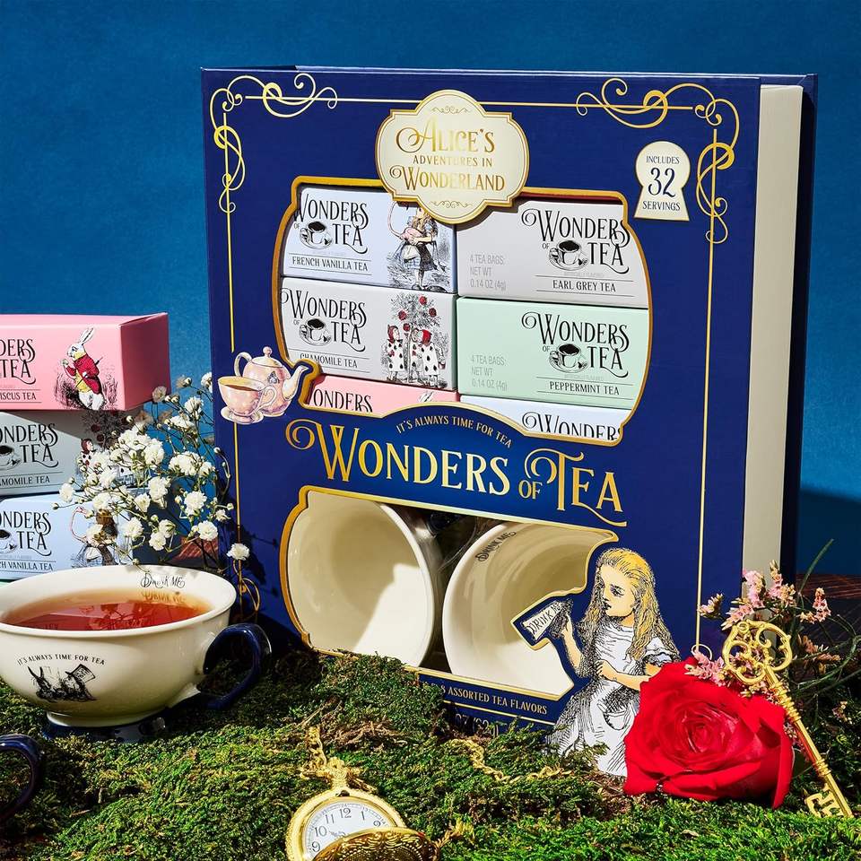Il Set di confezioni a forma di libro di Alice Adventures Wonderland comprende 2 tazze di ceramica 32 bustine di tè nero tè verde alle erbe Set da tè