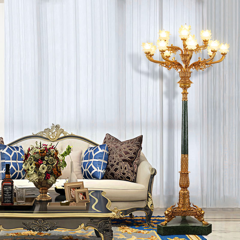 Tutto rame francese decerato rame marmo lampada da terra Villa lusso soggiorno Hall faro illuminazione da giardino in stile europeo