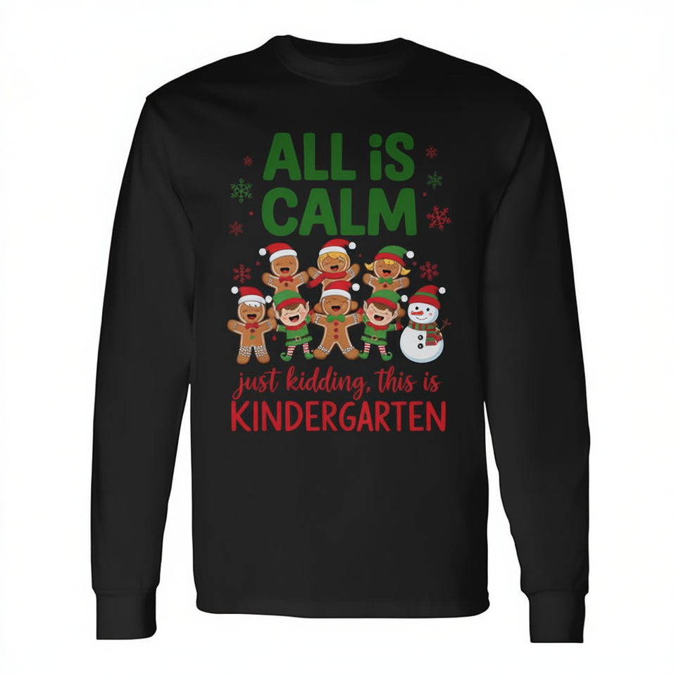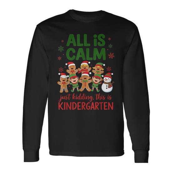 Tutto è calmo, questo è un'ottima maglietta natalizia a maniche lunghe con stampa Gingerbread Christmas