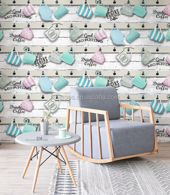 Tutti i tipi di simpatica tazza da caffè caffettiera appesa a parete modello Bar Cafe Dining Bar decorazione carta da parati