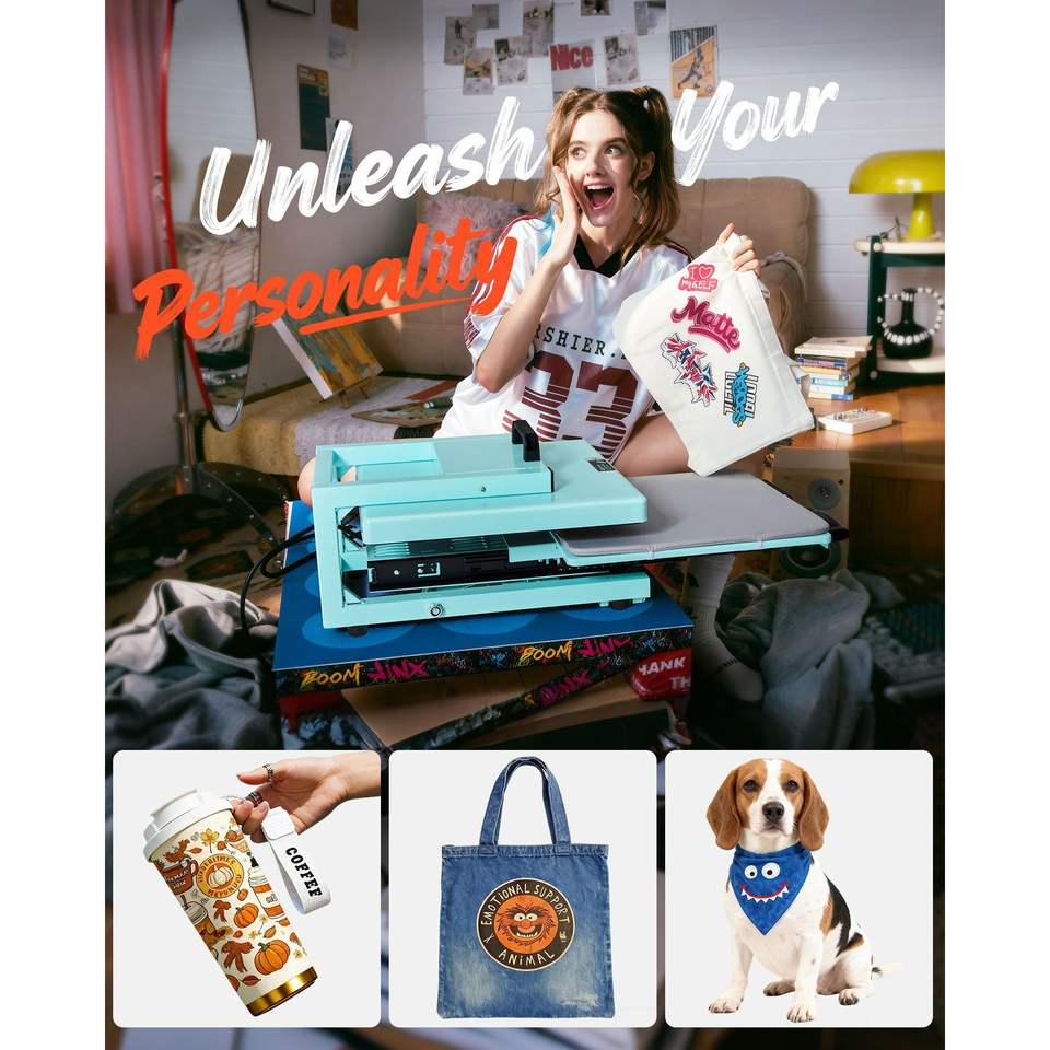 Nuovissima Pressa a Caldo Ibrida Multifunzione 8-in-1 15 X 15 Pollici, Facile da Controllare, Sublimazione Rapida, Modello Verde Chiaro D0100XFPU8U