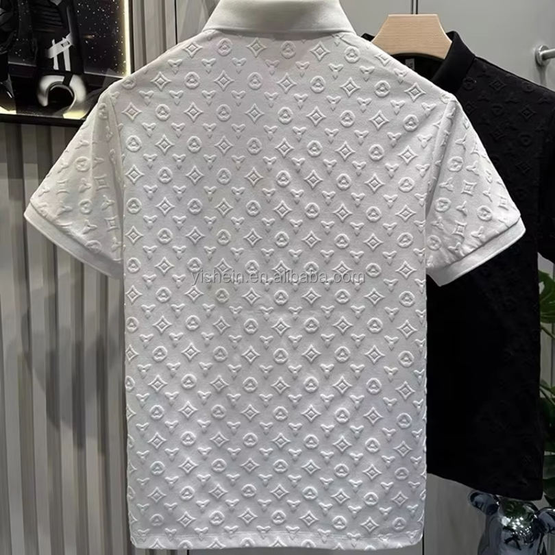 T-shirt uomo bianca con stampa 3D in rilievo all-over, cotone/poliestere/policotone, taglie XS–XXL personalizzabili, 1 pz/polybag