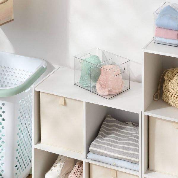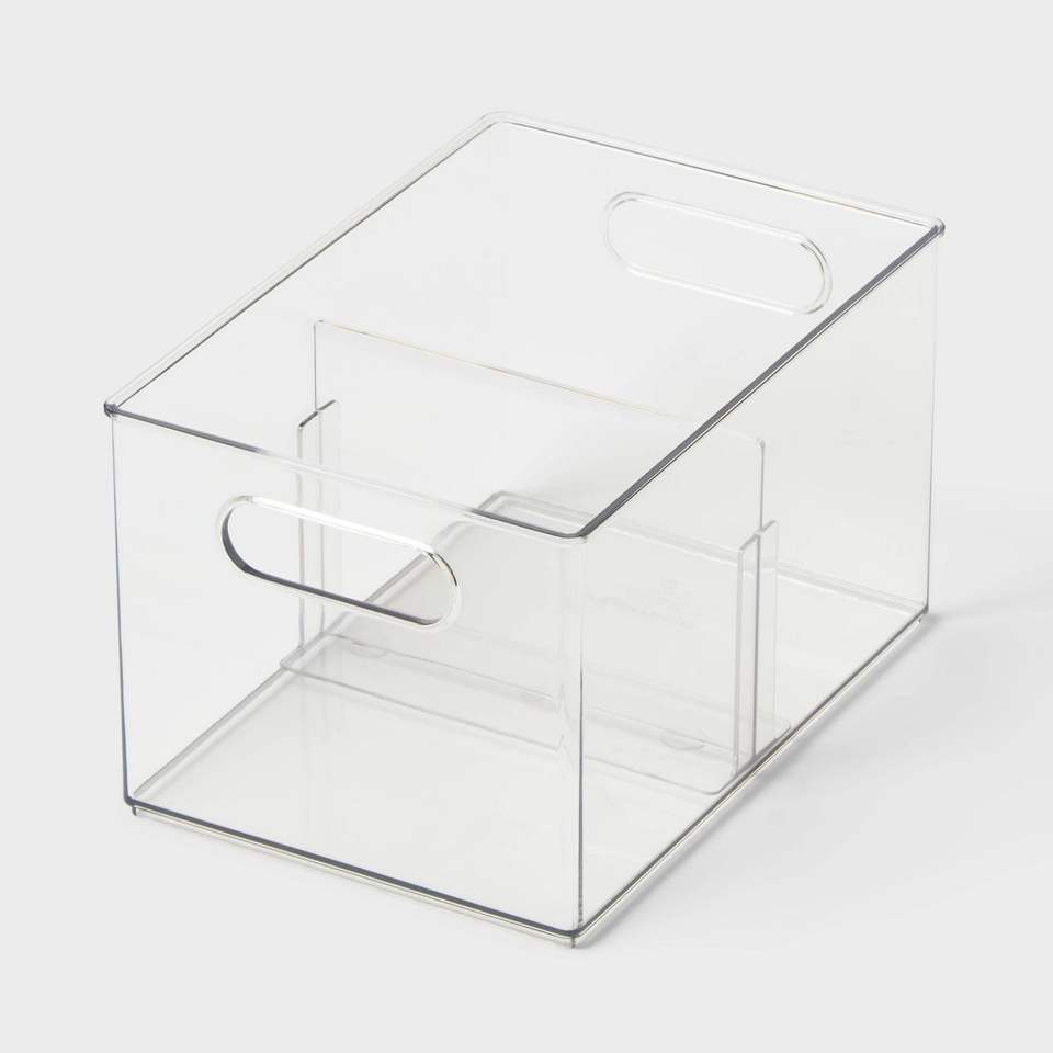 Contenitore portaoggetti trasparente multiuso con divisorio regolabile, cestino e contenitore in tessuto di piccole dimensioni