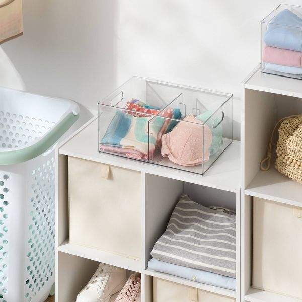 Contenitore di Stoccaggio Grande e Trasparente Multiuso con Divisorio Regolabile per Organizzazione Scaffali