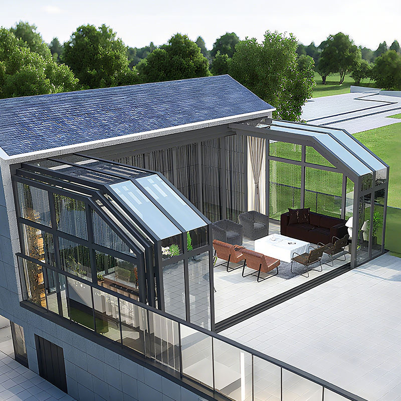 Tutti i-Season Design moderno in alluminio isolante veranda prefabbricata in policarbonato serra serra serra tetto piatto per il cortile per