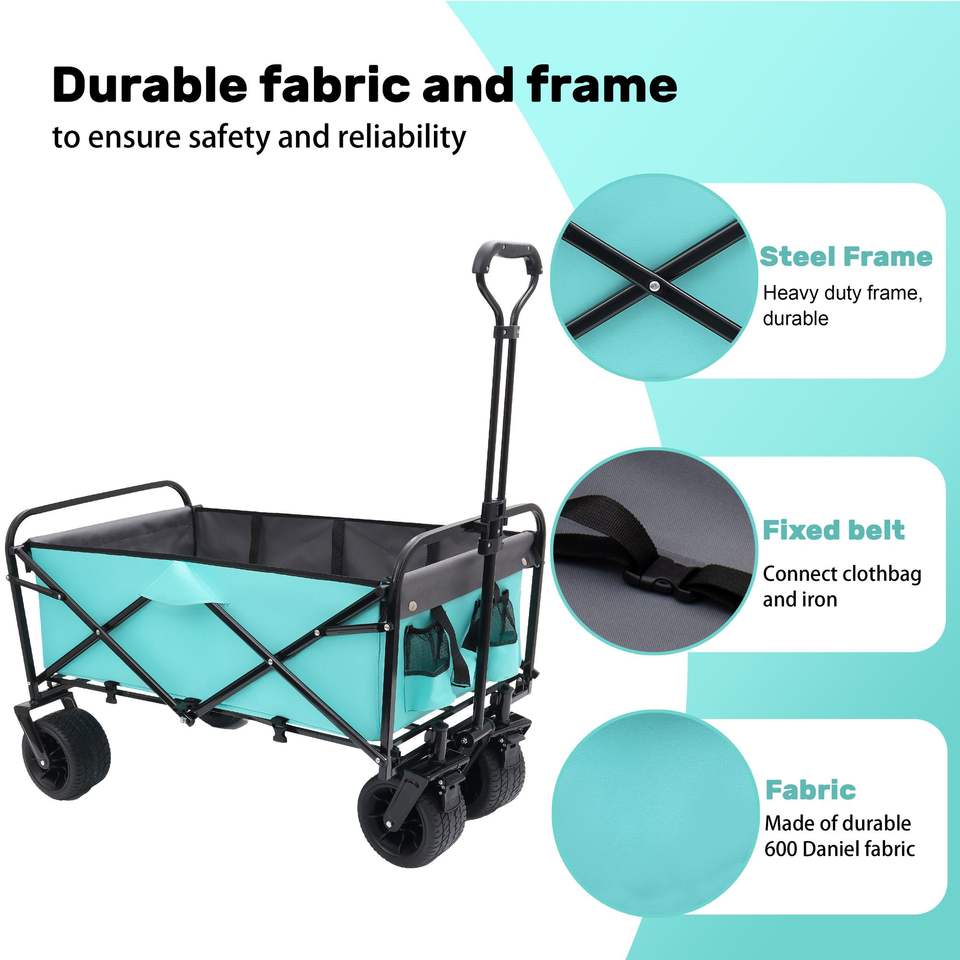 Carrello per vagoni pieghevoli pieghevoli blu fuoristrada 225 libbre supporta il sistema di reggette per la pesca del giardinaggio in campeggio