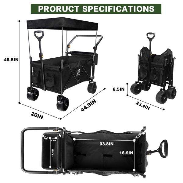 Carrello da campeggio pieghevole pieghevole per vagoni fuoristrada pieghevole con ruote freno per spiaggia e Shopping