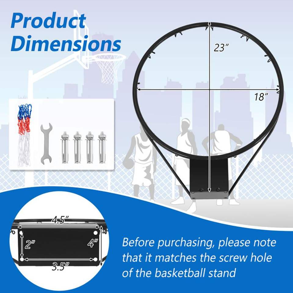 Anello da basket da 18 pollici per tutte le stagioni con attrezzatura di montaggio per campo sportivo