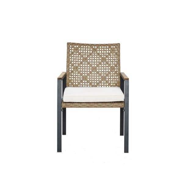 All Weather 5-Piece Patio Dining Table Set Acacia Wood Table Top with Umbrella Hole Rattan Garden Chairs Yellow Color