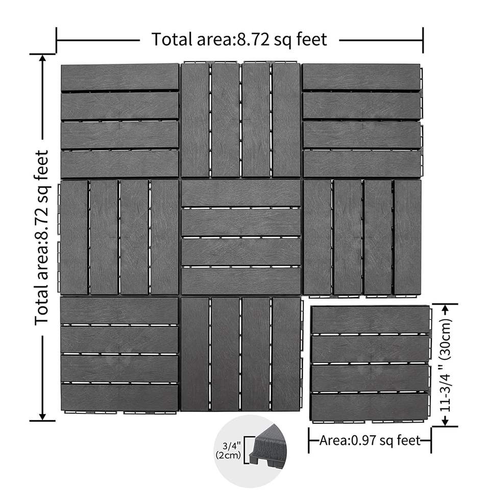 Piastrelle per ponti con interblocco per Patio per tutte le stagioni 12 \ "x12 \" piano piano quadrato in composito a quattro lamelle in plastica per balcone