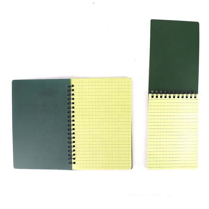 Per tutte le stagioni impermeabile a spirale taccuino verde griglia carta Steno Pad Memo Book con copertina per campeggio e escursioni all'aperto