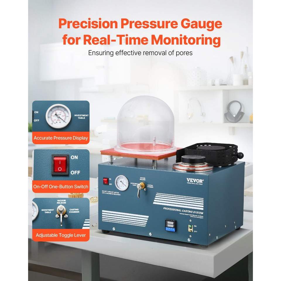 Macchina per microfusione sottovuoto all-in-one con porta di iniezione olio, forno di precisione e attrezzatura per gioielleria