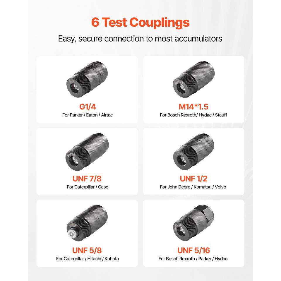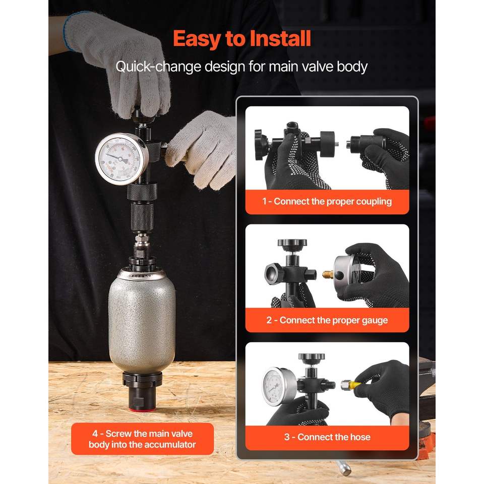 Kit di ricarica idraulico completo per accumulatore di azoto con 3 manometri (1500, 4000, 6000) per sistema di test e riempimento azoto