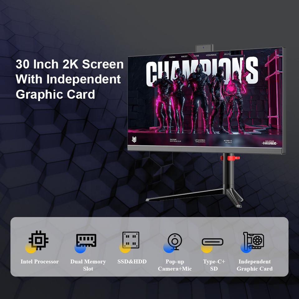 All in One PC 30 Inch 2K Gaming Computer Intel I3/5/7 Monoblock Discrete Graphic Card With Type-C,SD, Support DIY Configuration