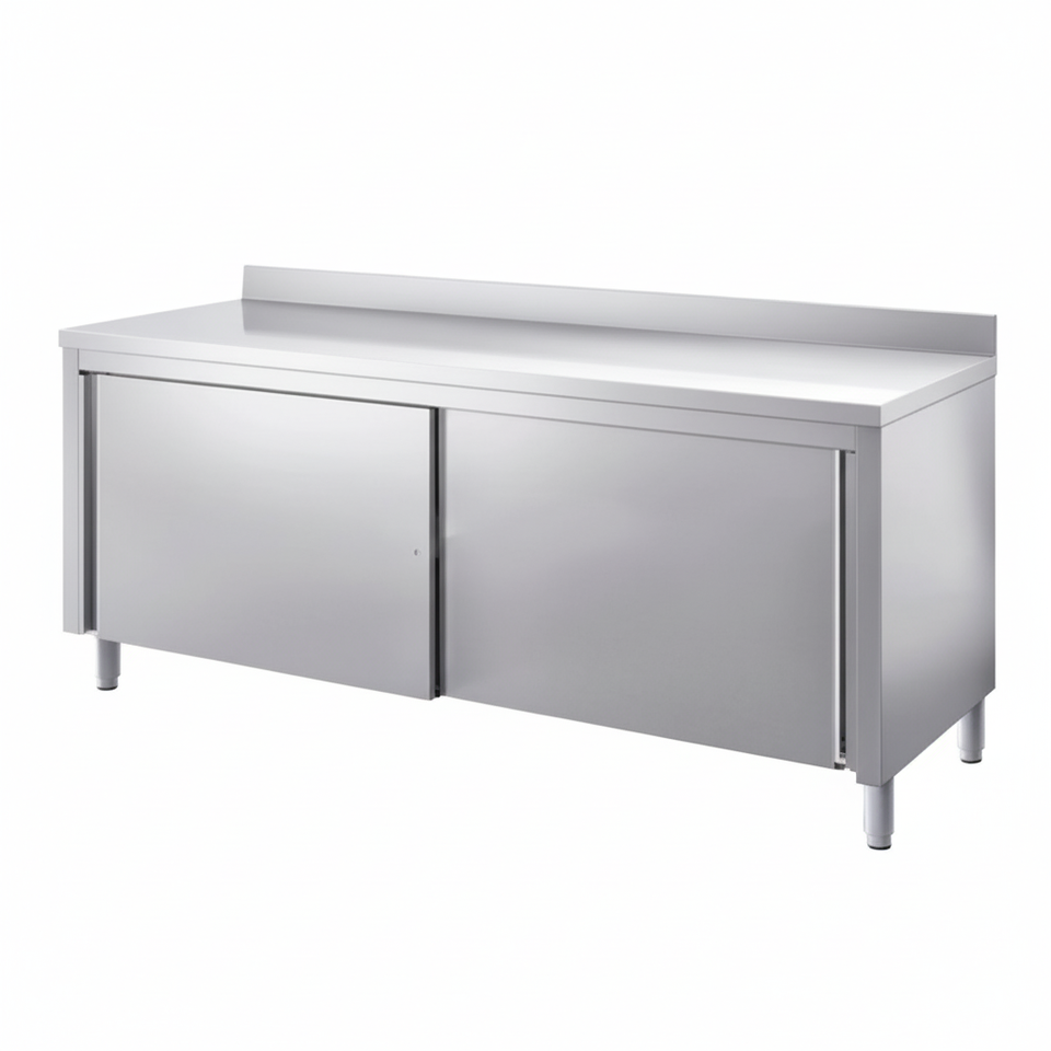 AllFoodProject.com tavolo in acciaio inox con porte scorrevoli e Backsplash modello AFP/1568