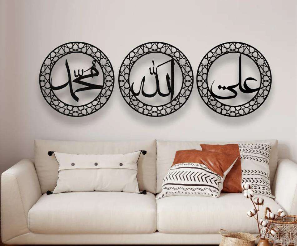 Allah Muhammed and Ali Metal Arts for Muslim Homes Wall Hangings Islamic Calligraphy Islamic Wall Decor Metal Wall Art